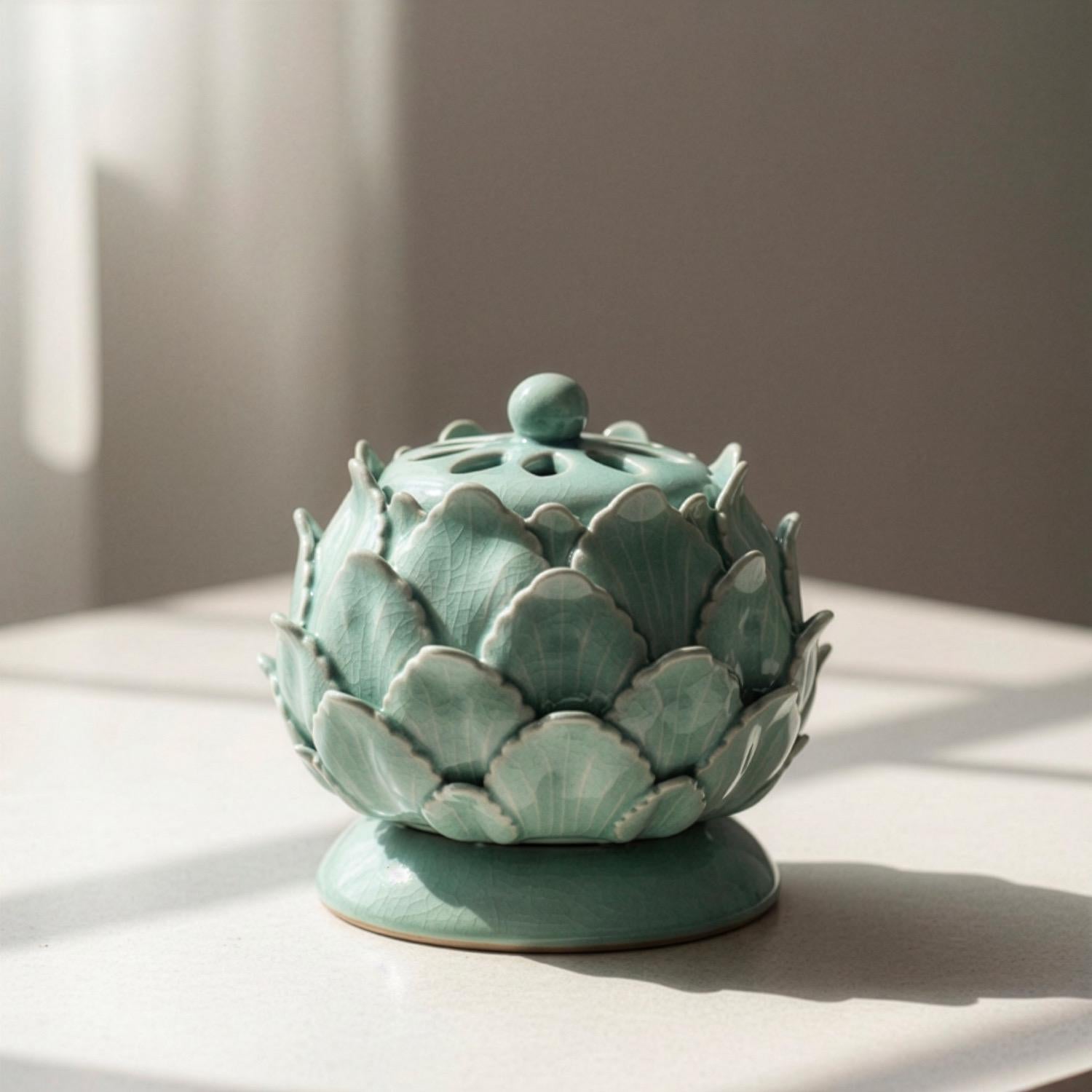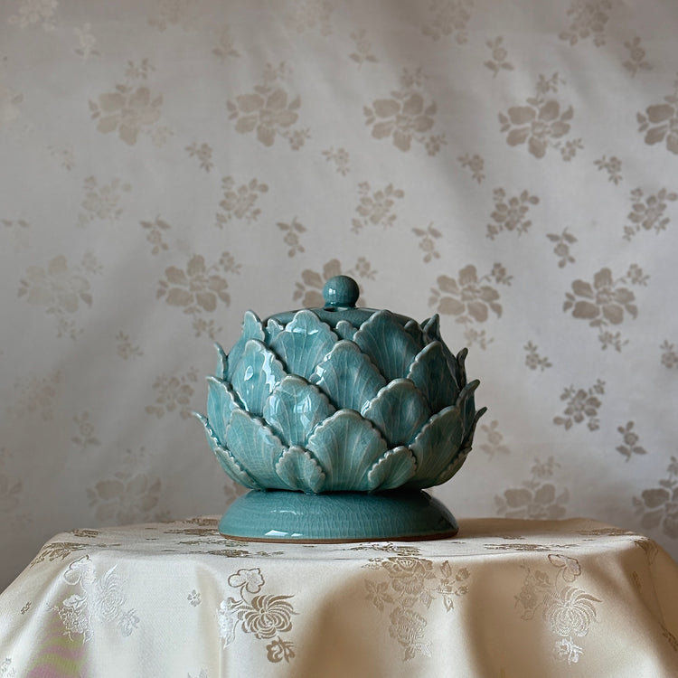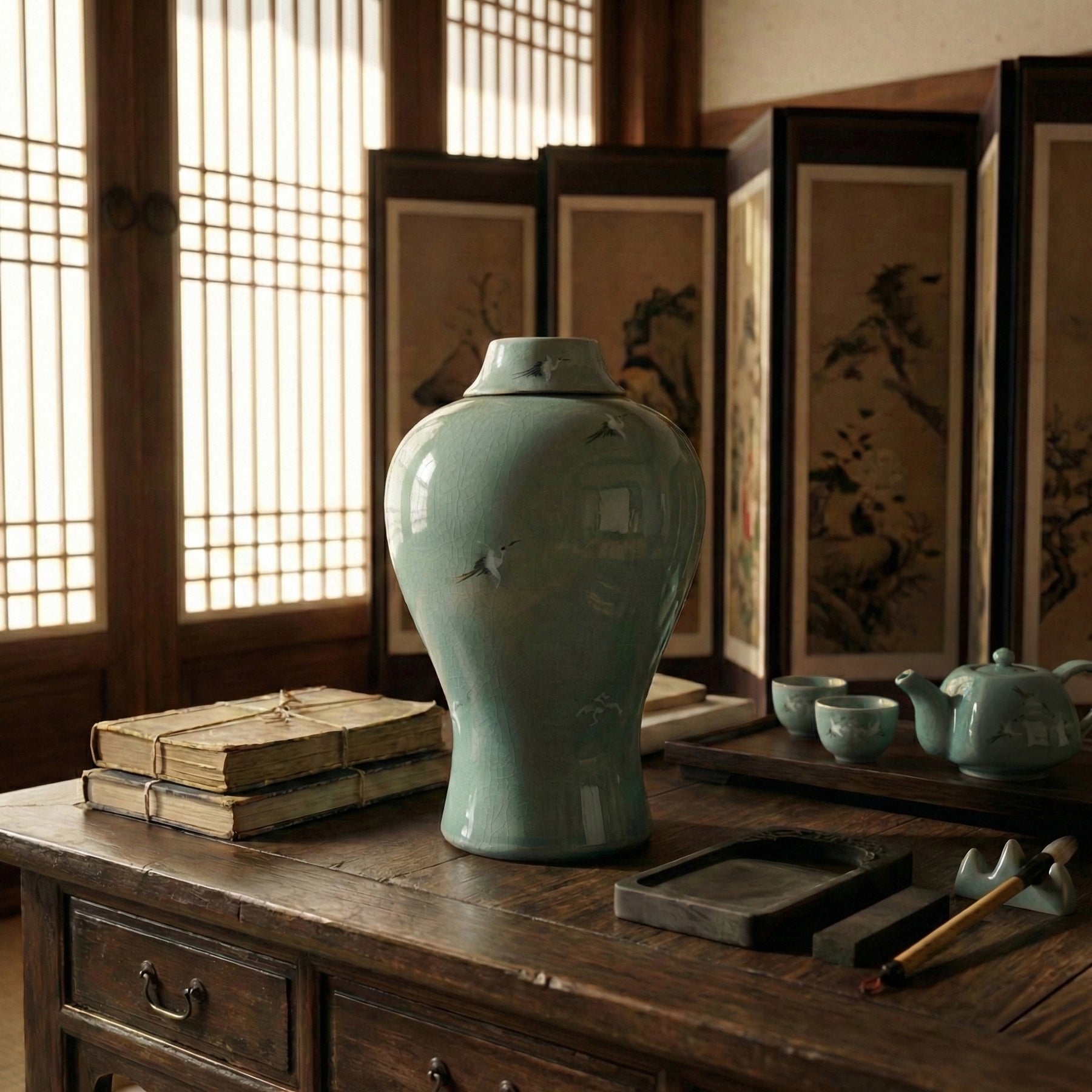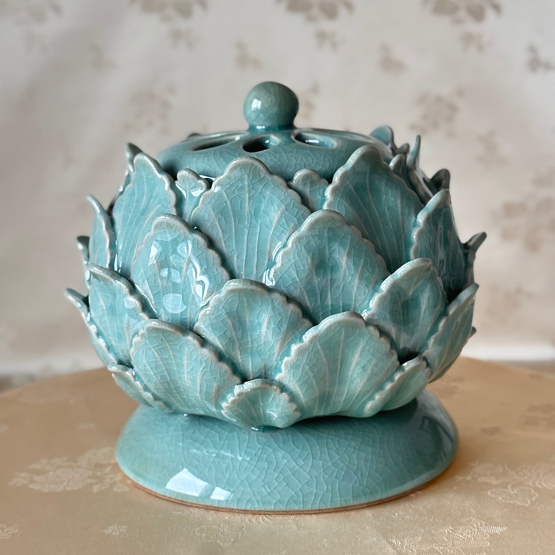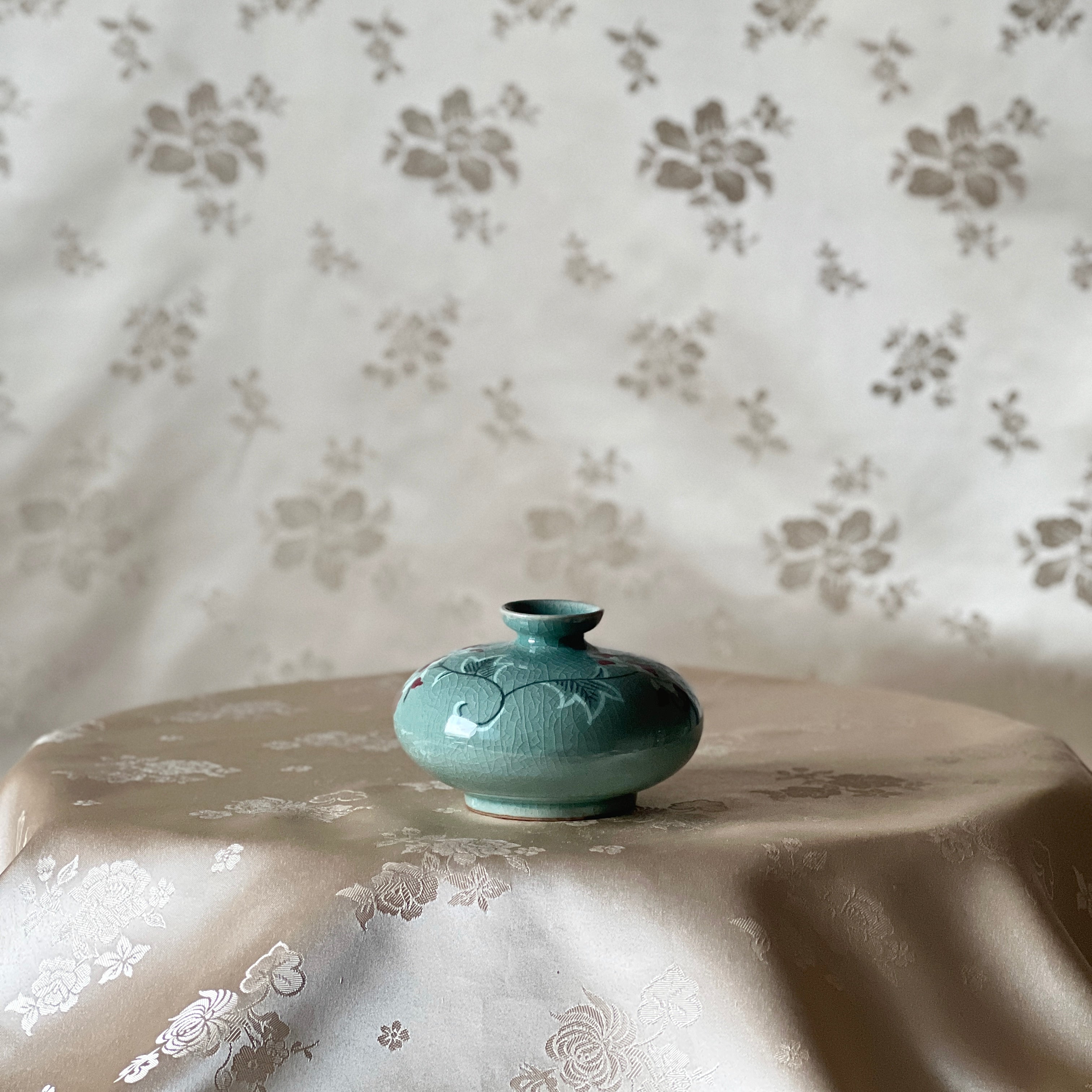 Korean celadon pottery renowned the world over since Goryeo Dynasty (918-1392) for its exquisite inlaid designs, elegantly curved lines and mysterious color- the color of the sky after a rainstorm during an autumn afternoon.