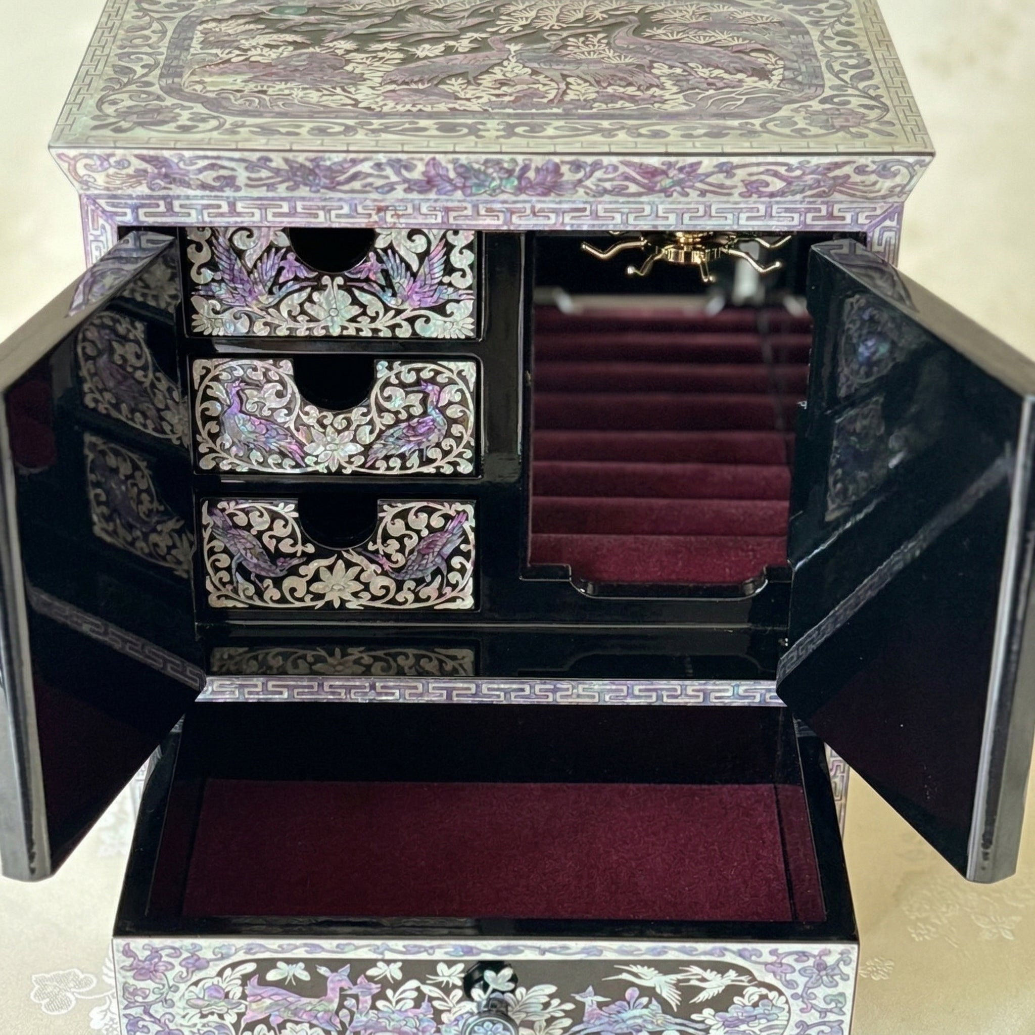 For centuries, Korean artists have mastered the art of najeon chilgi, transforming ordinary lacquerware into dazzling works of beauty. Using mother-of-pearl from seashells, they create intricate designs of nature’s wonders, such as flowers, birds and butterflies.