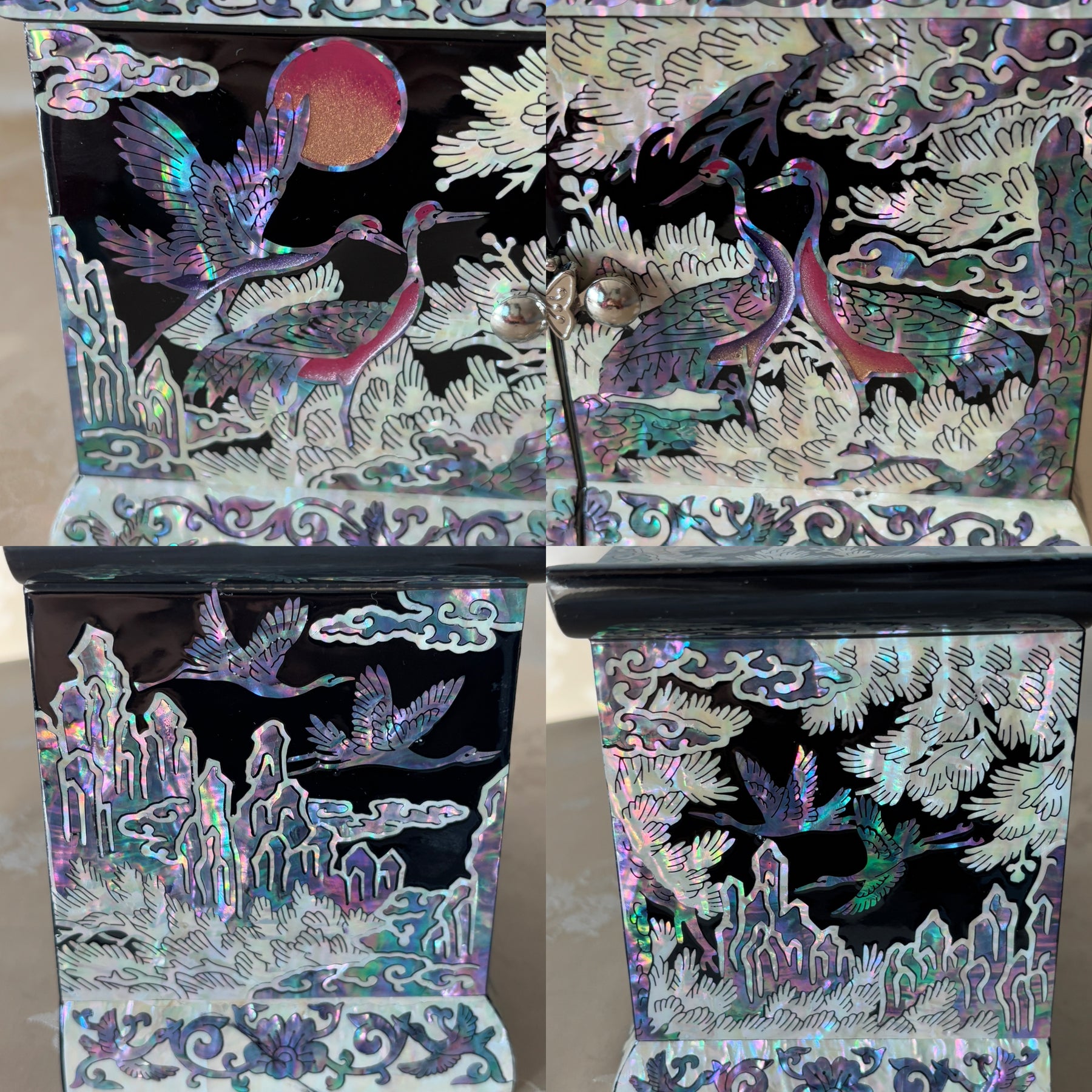 Mother of Pearl Jewelry Box with Pine and Crane Design