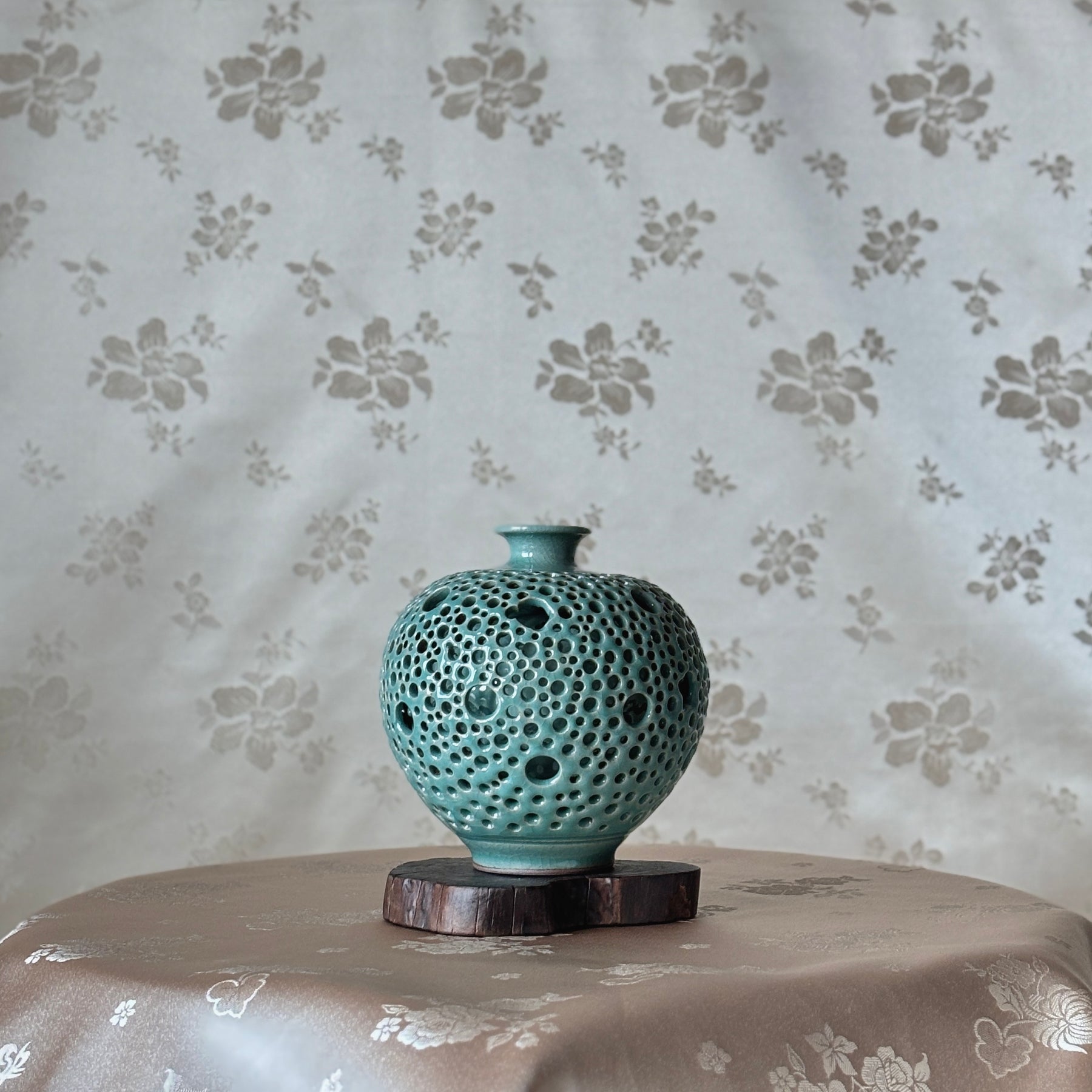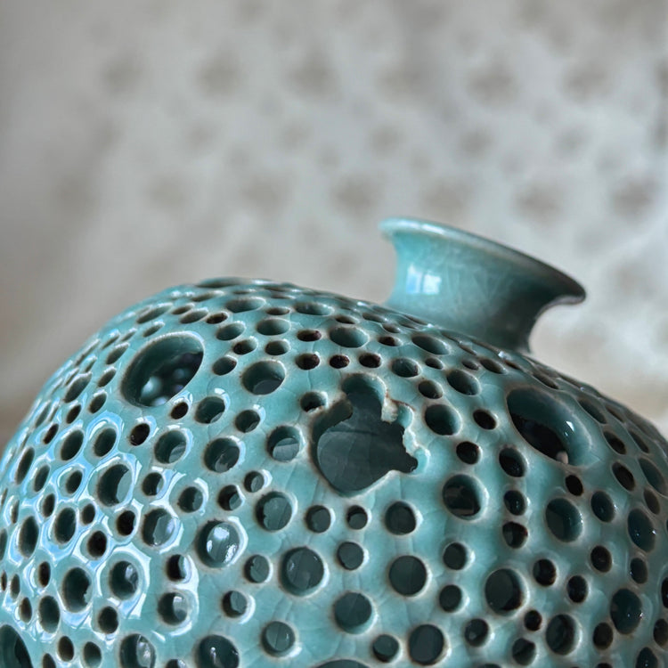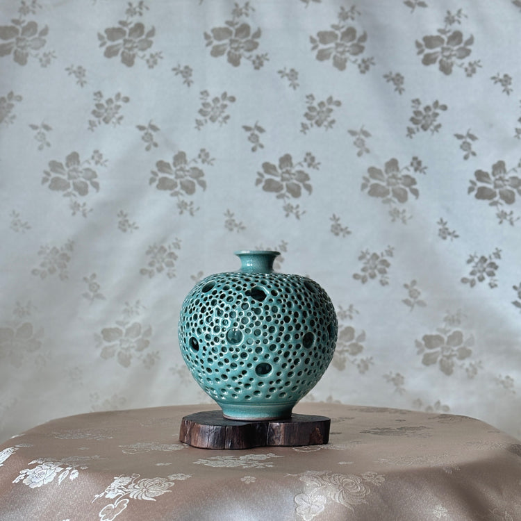 Celadon Vase: Double-Walled Openwork with Crane Motif and Celestial Openwork Exterior