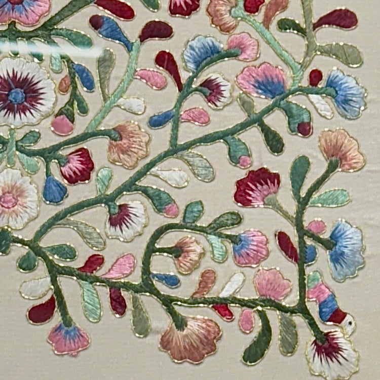 This piece of traditional Korean embroidery is more than a visual delight—it is a woven expression of resilience and heritage. Meticulously hand-stitched onto beige silk, the vine motif (Dangcho-mun) unfurls across the surface in elegant symmetry, each thread a testament to patience and quiet mastery.