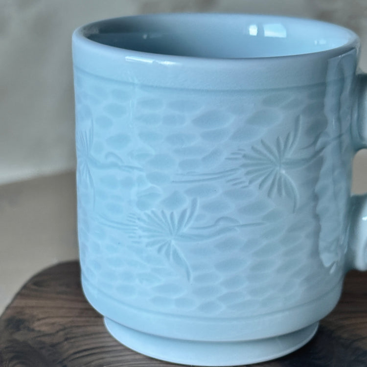 This elegant Korean white porcelain cup set celebrates subtle craftsmanship and timeless symbolism. Formed in a softly luminous ivory porcelain, each small cup features an incised crane motif, delicately carved into the surface and revealed through light and shadow rather than color.