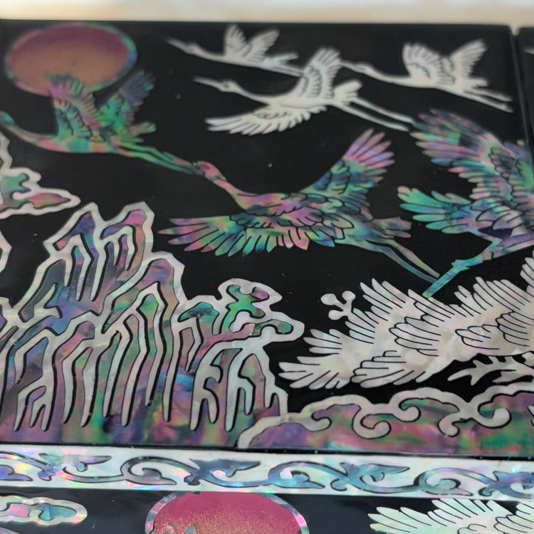 Picture hosting a dinner party where this jewelry box becomes the centerpiece of admiration. Guests marvel at its intricate design, asking about its origins and meaning, giving you the opportunity to share its rich cultural symbolism. Or imagine a quiet moment just for yourself, gazing at the cranes and pines while reflecting on your own journey of resilience and grace—qualities mirrored in the box’s design.