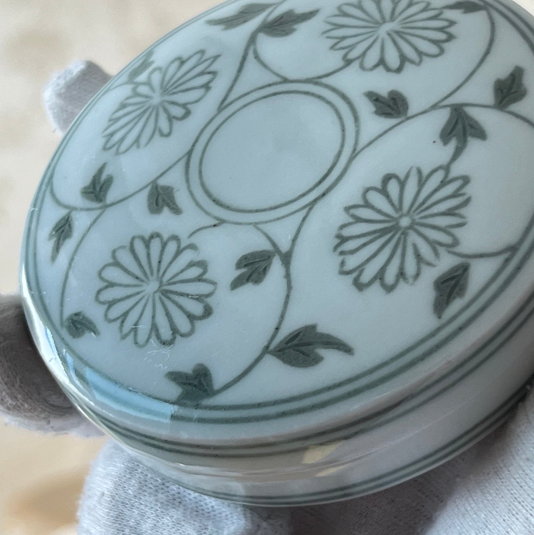 White Porcelain Covered Box: Inlaid Chrysanthemum and Scrolling Vine Motif by Master Artisan