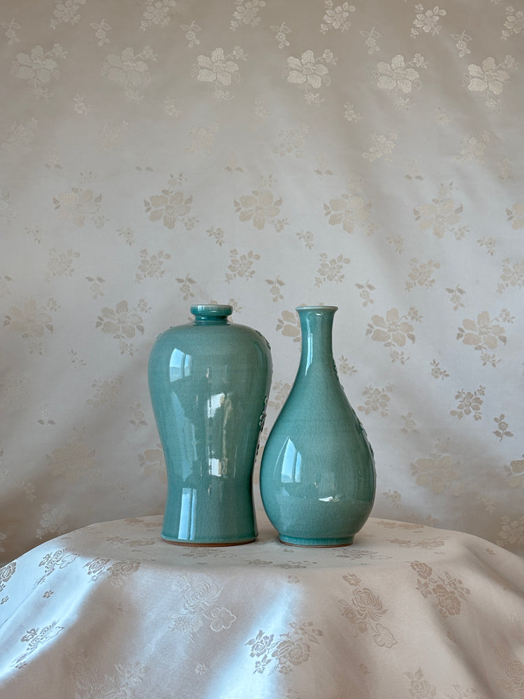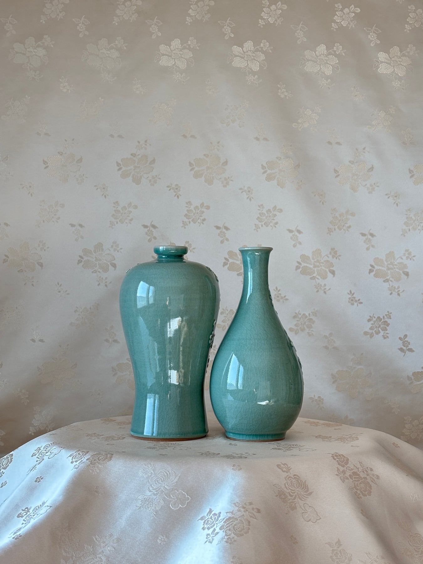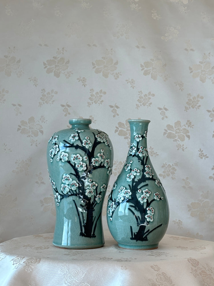 Korean celadon Maebyeong and Jubyeong Vase Set: with Plum Blossom Motif