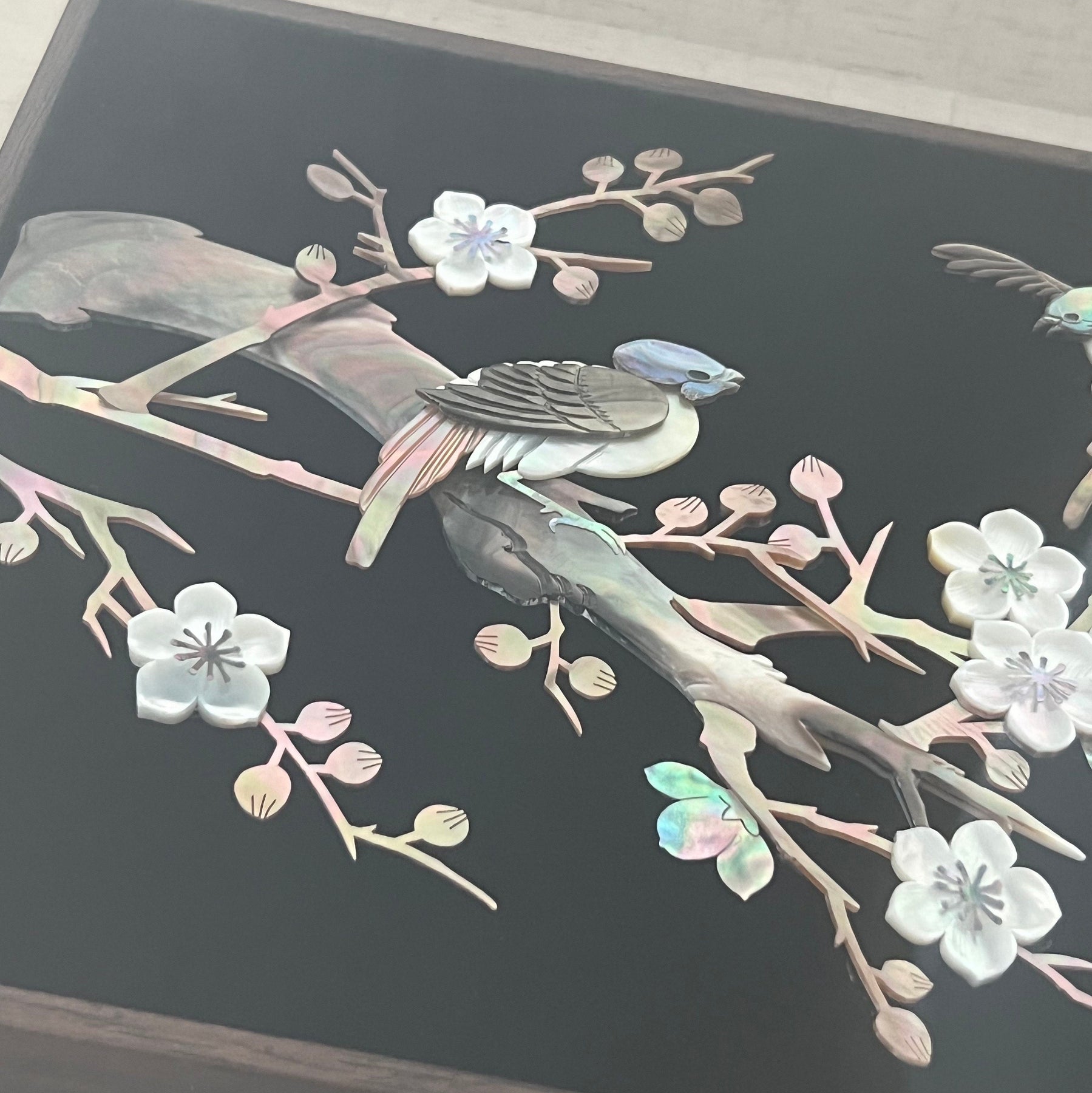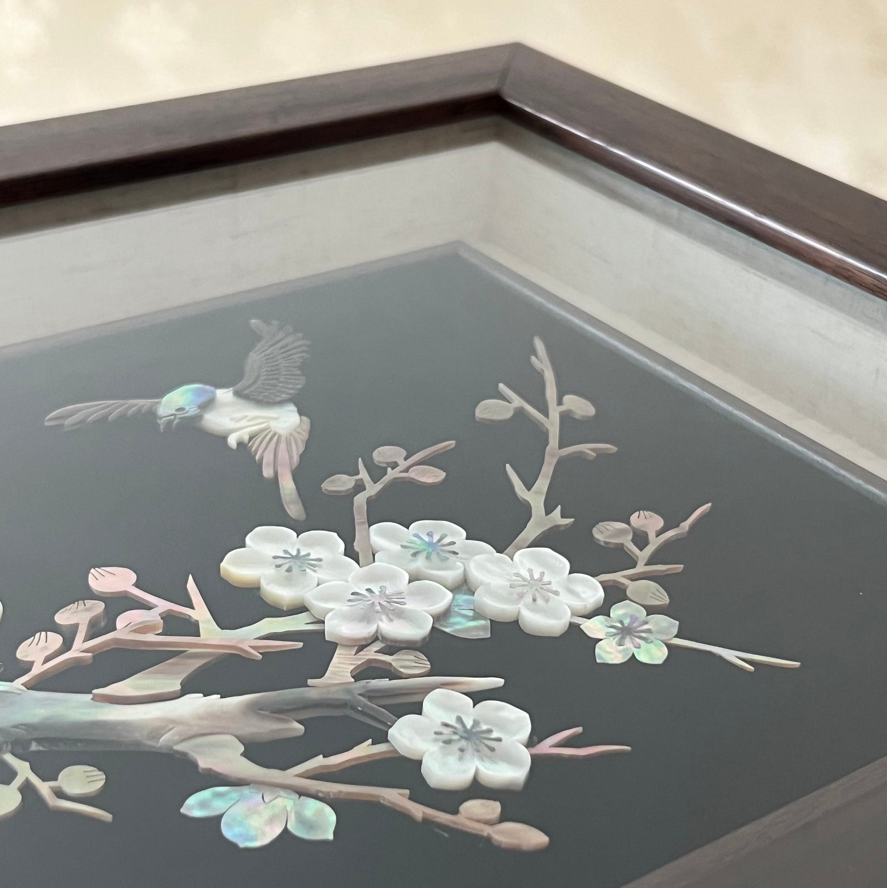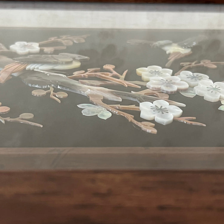 Mother-of-Pearl Art Panel: Horizontal Format, Whole Shell with Plum Blossom Tree and Bird Motif