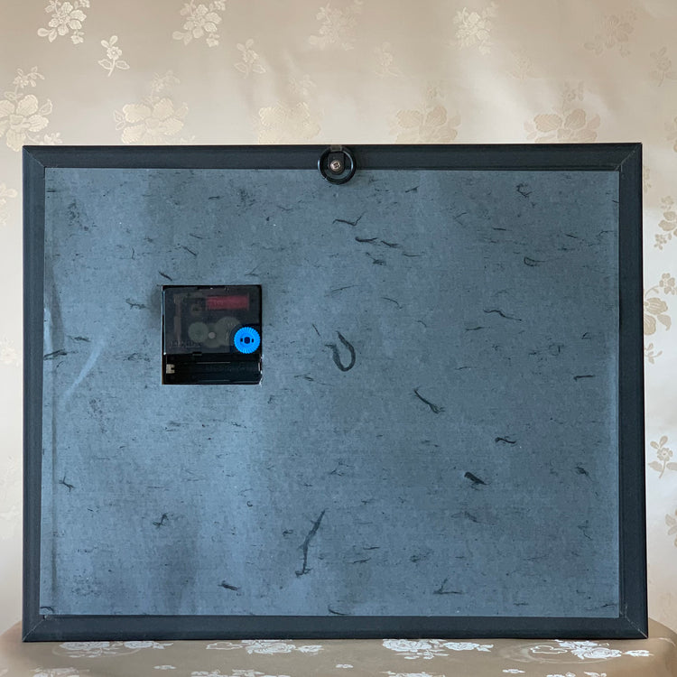Kunsthandwerk aus Perlmutt mit Muster aus Kiefer, Kranichen und Uhr im Holzrahmen (자개 원패 송학문 Գ네 액자)