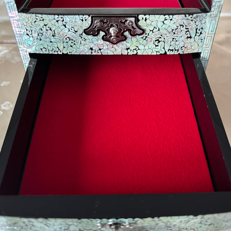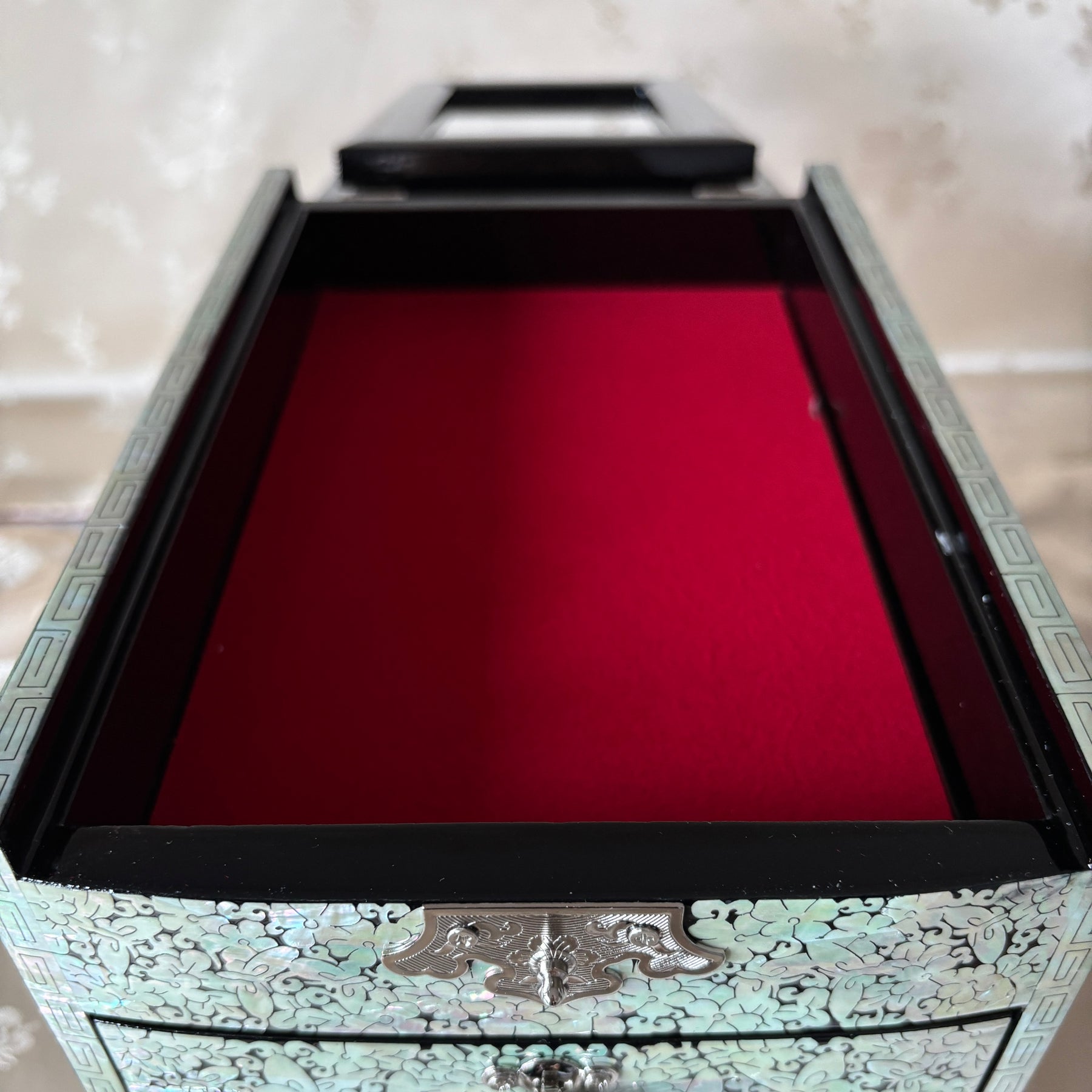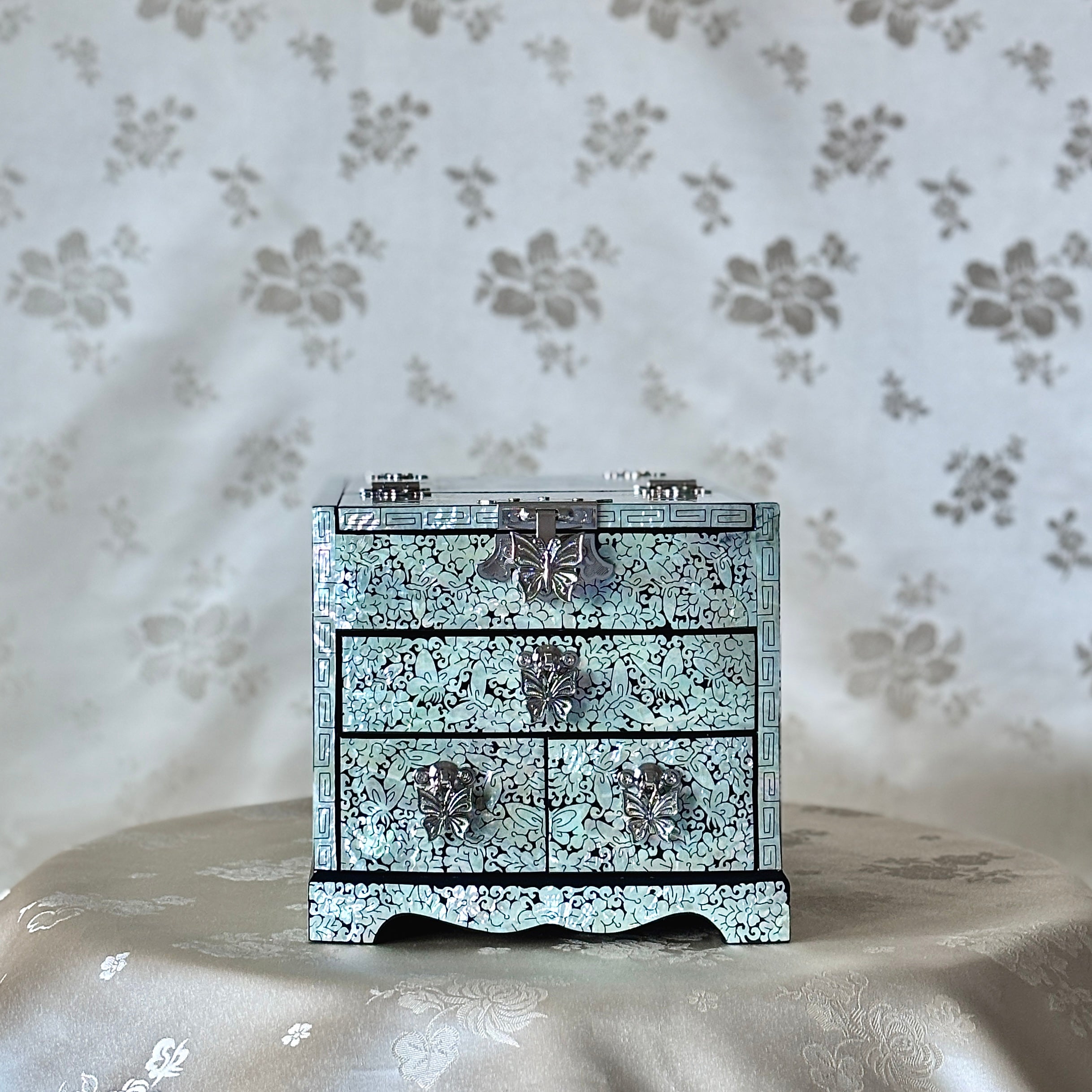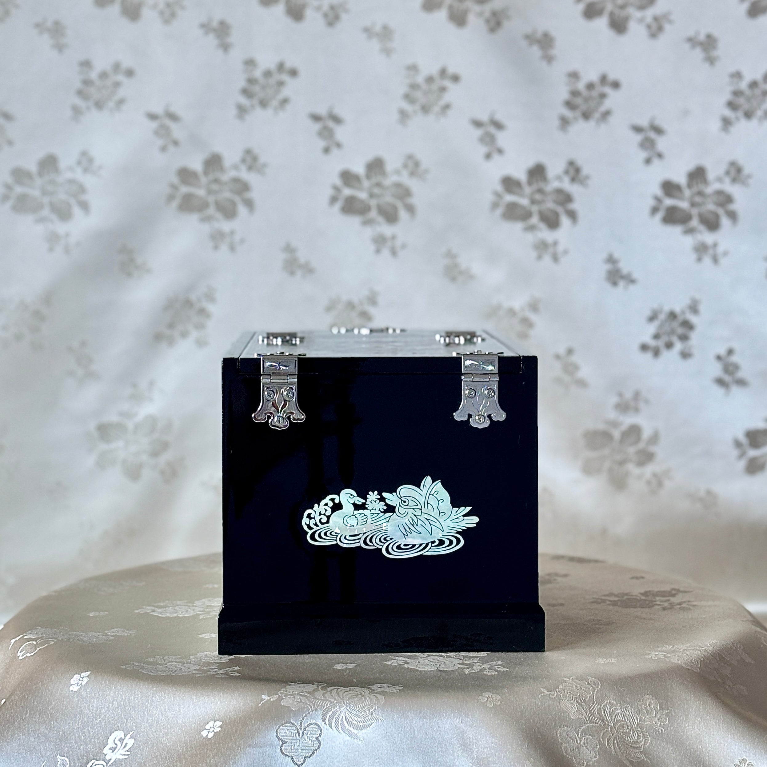 Ob für Sie selbst oder als luxuriöses Geschenk für einen geliebten Menschen – diese Schmuckschatulle trägt das reiche Erbe koreanischer Kunstfertigkeit in sich. Als perfektes Hochzeits- oder Jubiläumsgeschenk verkörpert sie Wünsche für lebenslanges Glück und Wohlstand.