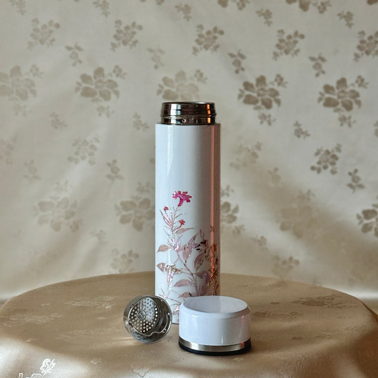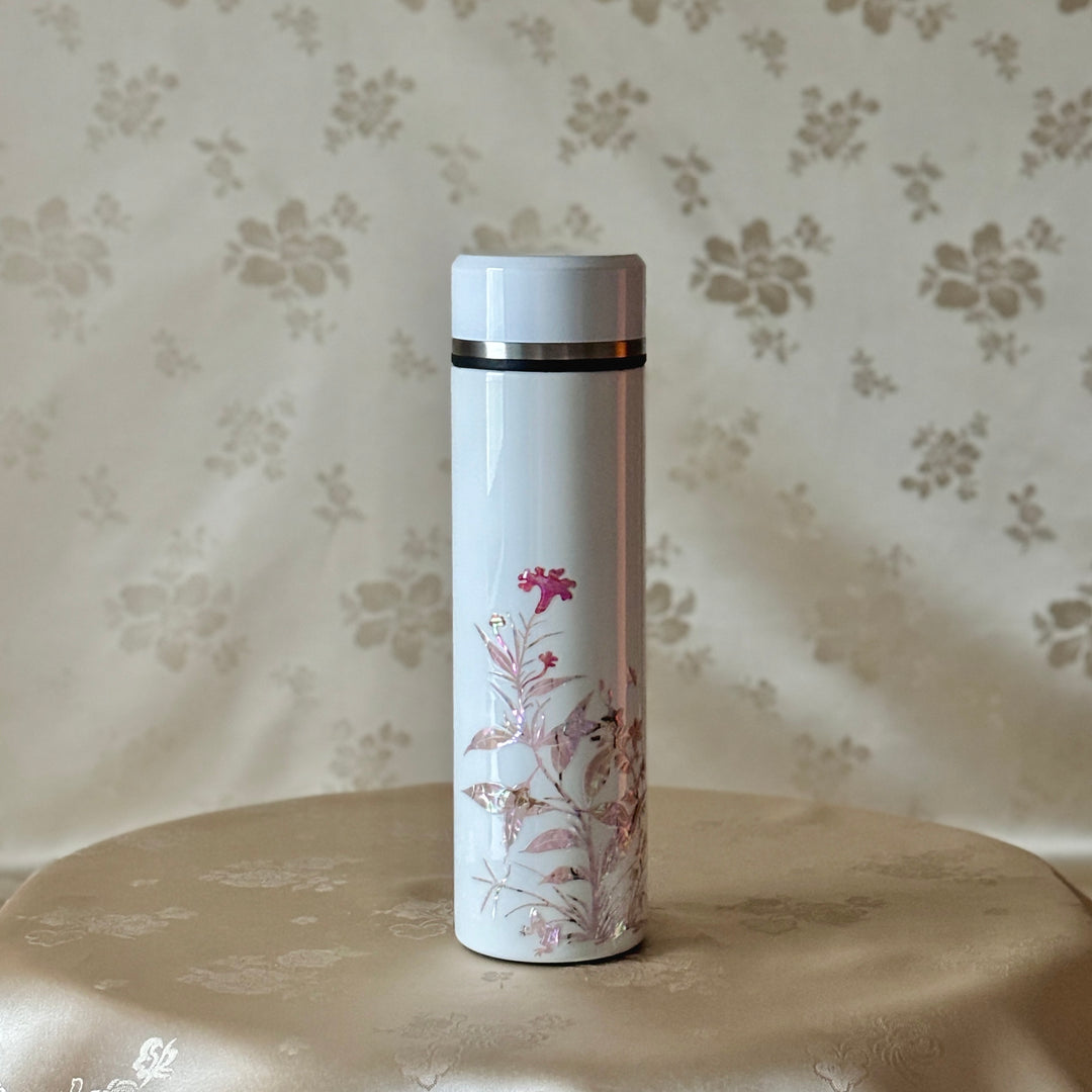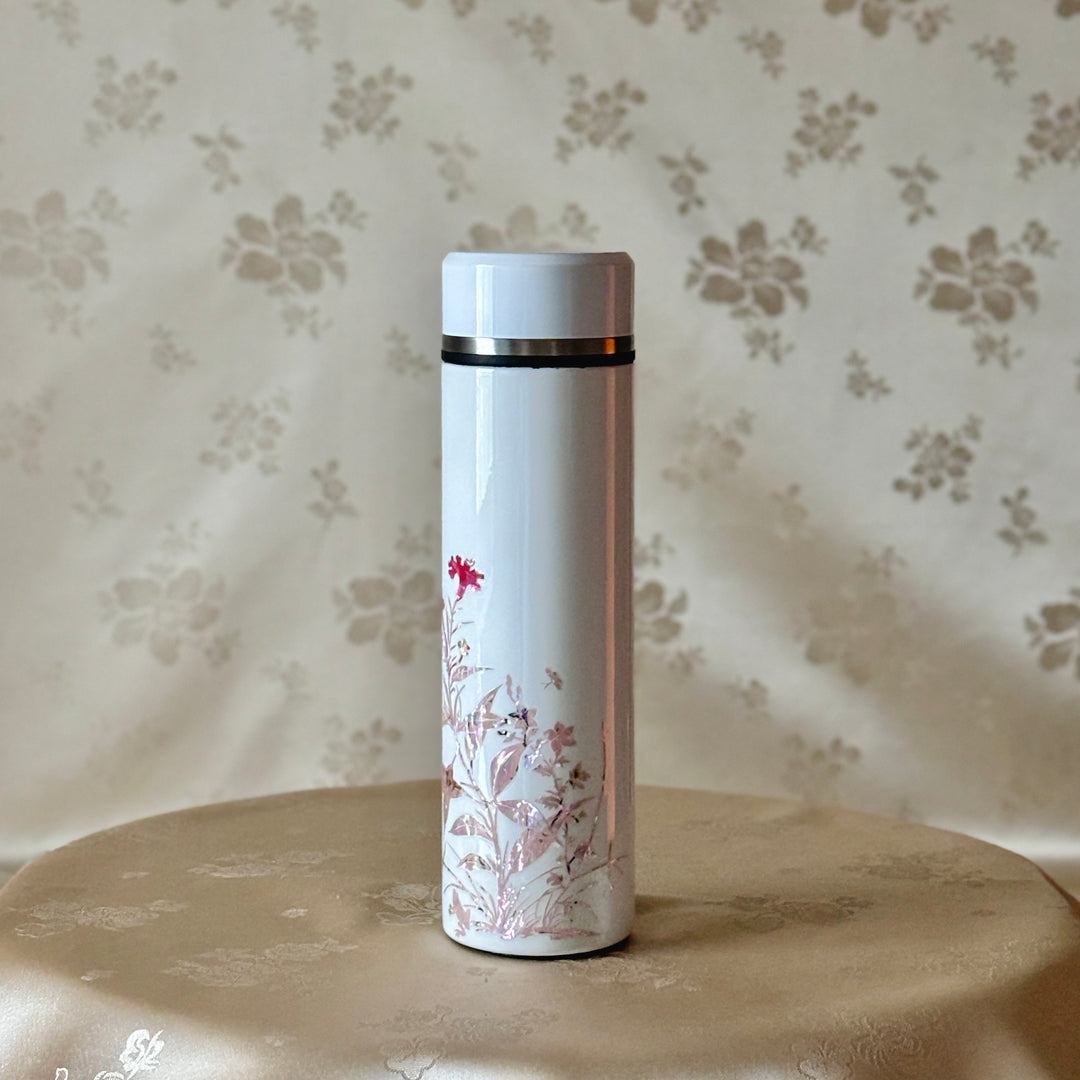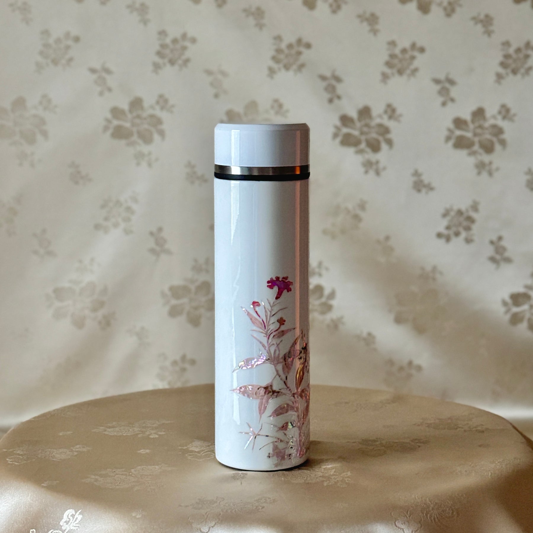 Erleben Sie die perfekte Mischung aus traditioneller koreanischer Kunstfertigkeit und moderner Funktionalität mit unserer traditionellen koreanischen Thermoflasche aus perlmuttweißem Edelstahl mit Celosia Cristata- und Froschmuster (자개 맨드라미 개구리 무늬 보온병). Diese exquisite Thermoflasche hält Ihre Getränke nicht nur auf der gewünschten Temperatur, sondern zeigt auch die zeitlose Schönheit der koreanischen Perlmutt-Handwerkskunst.