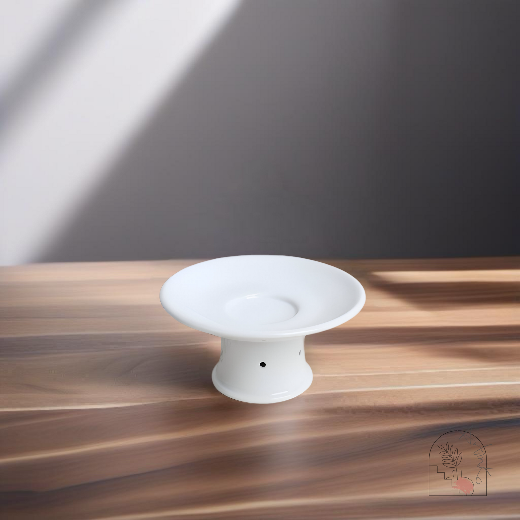 Die Tasse hat einen anmutig geschwungenen Deckel, der perfekt passt und die Heiligkeit des Opfers bewahrt und gleichzeitig die ästhetische Anziehungskraft des Stücks erhöht. Der dazugehörige Ständer ist nicht nur ein funktionales Element, sondern eine Fortsetzung des ruhigen Designs der Tasse und bietet eine stabile Basis, die ihre sanften Konturen ergänzt.