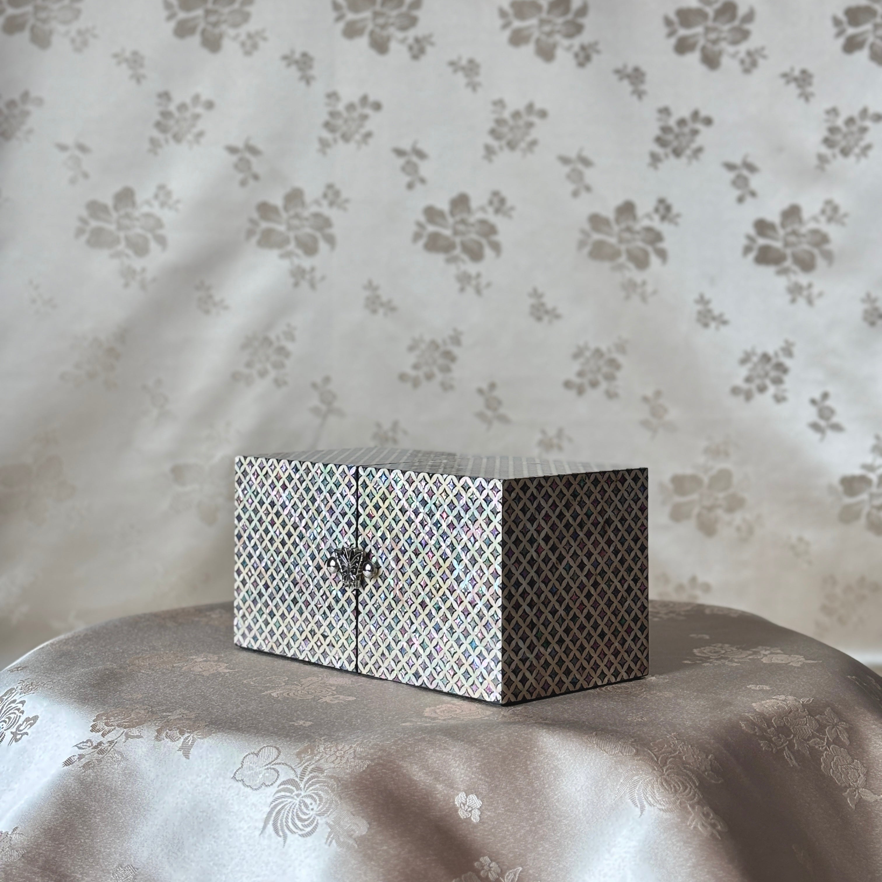 Adorn your space with the timeless elegance of Korean traditional mother of pearl sets, intricately designed with the special ‘chilbo’ pattern. ✨🕰️ #ArtistryInCraftsmanship”