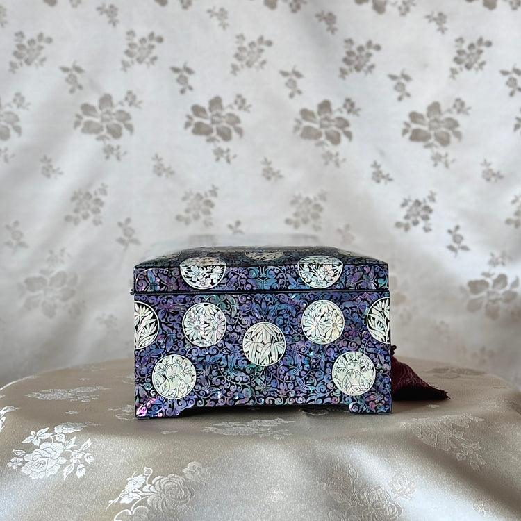 This piece is not simply a storage box but a small heirloom object—one that rewards close, unhurried looking. In a calm interior, whether on a bedside table or a curated shelf, it introduces a sense of quiet ceremony: the feeling of bringing a traditional artwork into everyday life.