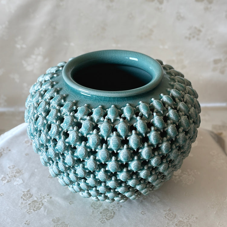 Picture this vase displayed by a large window, where sunlight streams through the openwork and creates a captivating play of shadows. As the day shifts, the turtles on the vase appear to come to life, casting delicate, intricate patterns on nearby surfaces. Imagine unwinding with a cup of tea, taking in the serene ambiance it brings to your space. This vase doesn’t just enhance a room—it transforms it into an oasis of calm, offering a reminder to embrace patience and tranquility in daily life.
