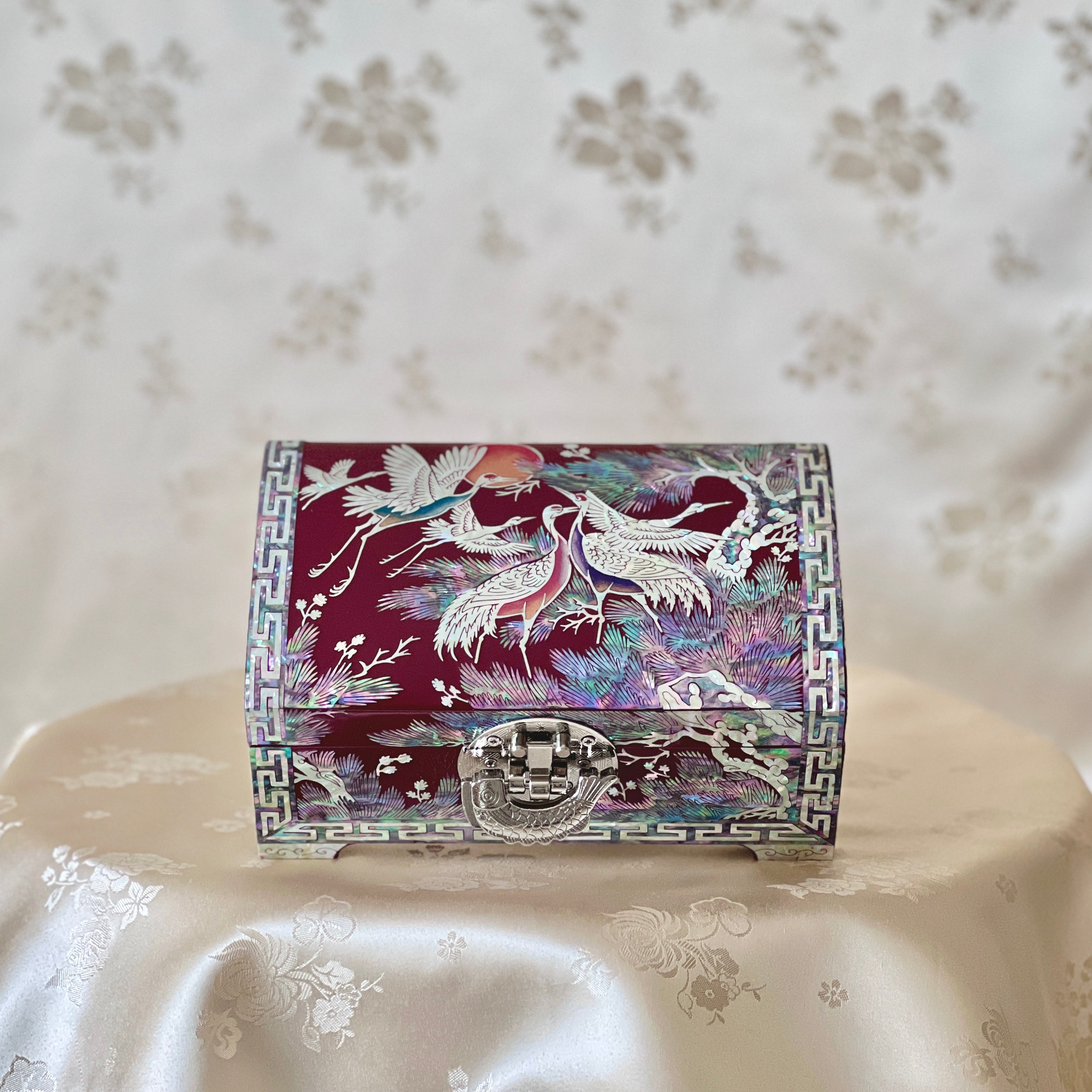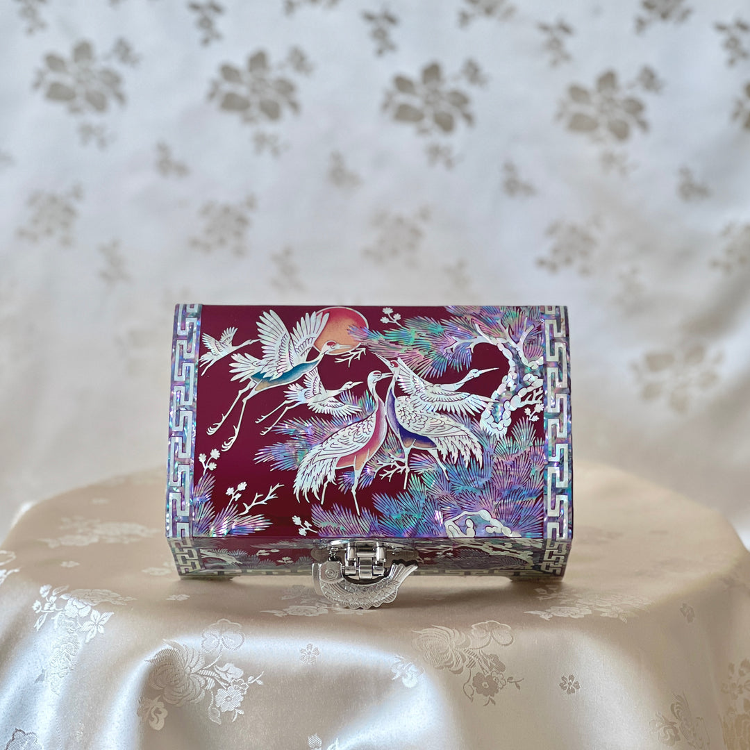 Mother of Pearl Wooden Jewelry Box with Pine Tree and Crane Pattern