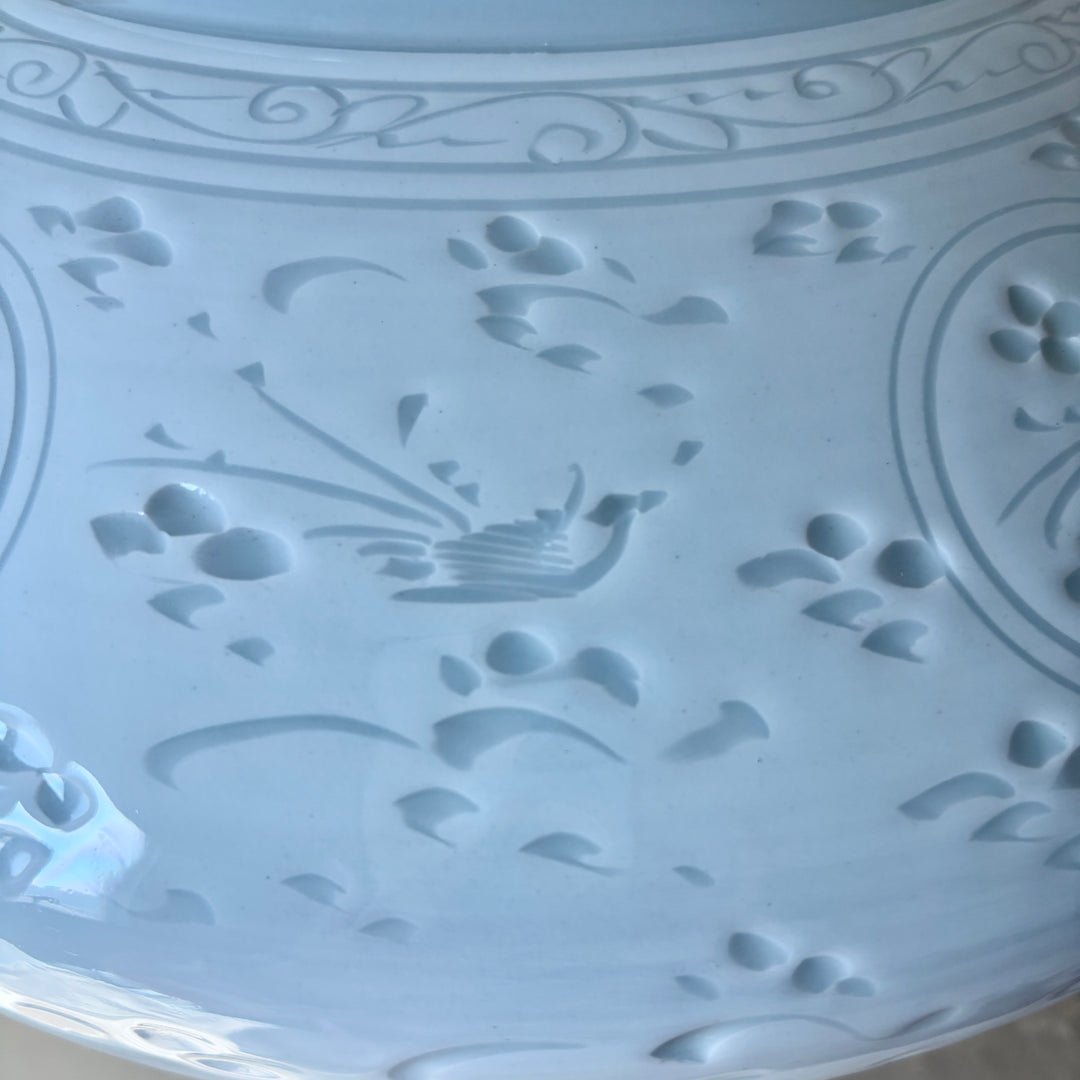 In Korean culture, cranes symbolize longevity, peace, and harmony, while clouds represent fortune and limitless possibilities. The combination of these motifs not only enhances the vase’s elegance but also brings an auspicious and calming energy to your home. The subtle carving technique allows light to cast soft shadows across the incised design, creating a mesmerizing depth and texture.