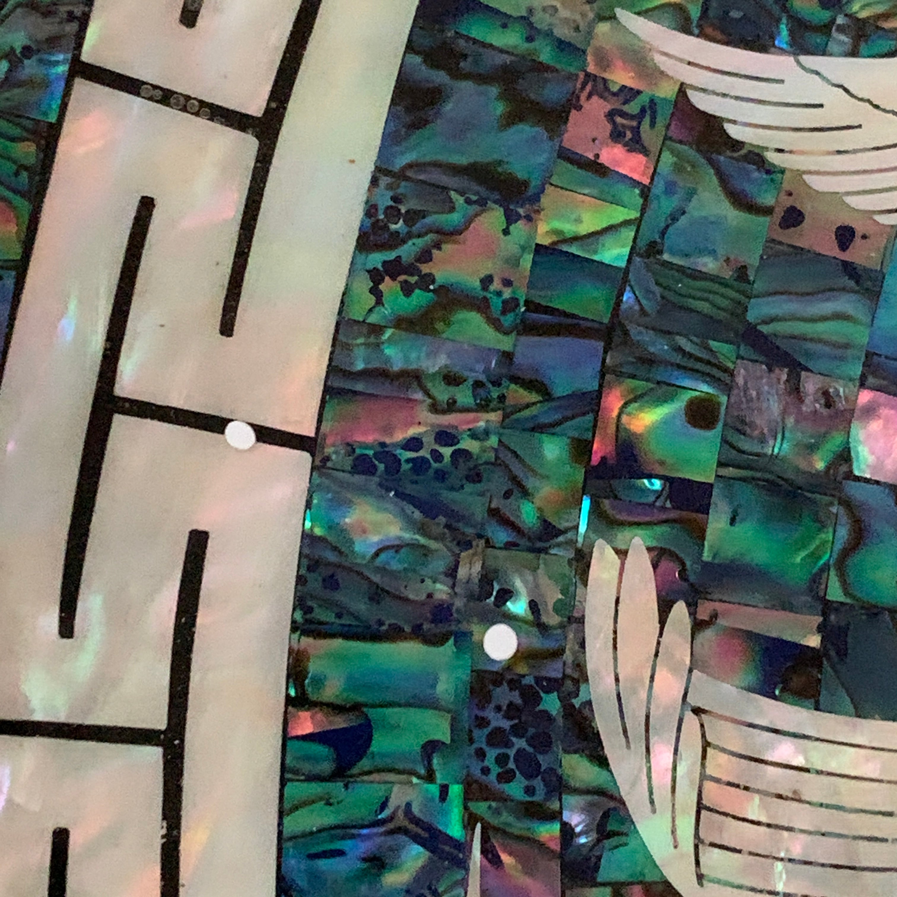 孔雀、牡丹、アワビのディテールが施されたマザーオブパールの木製プレート