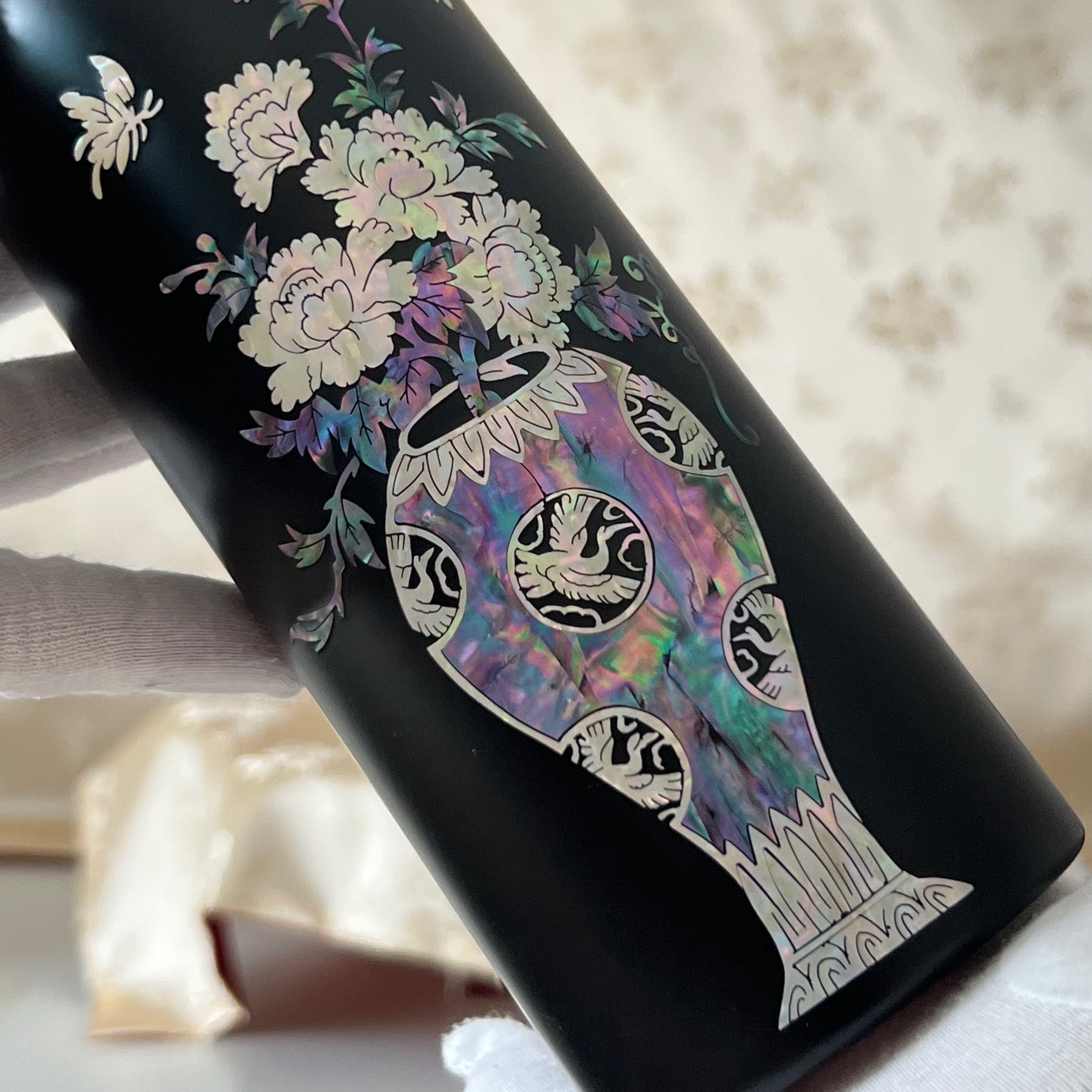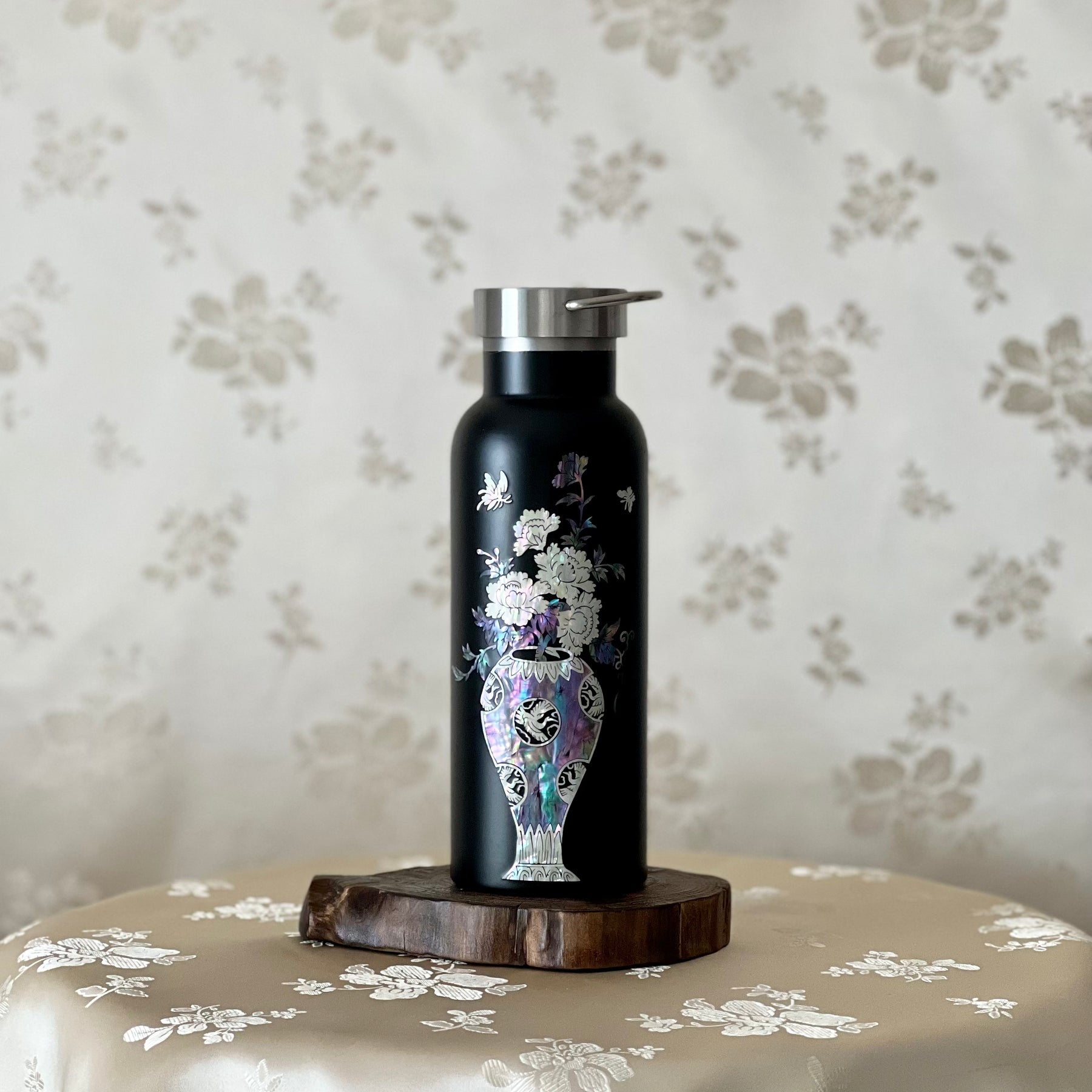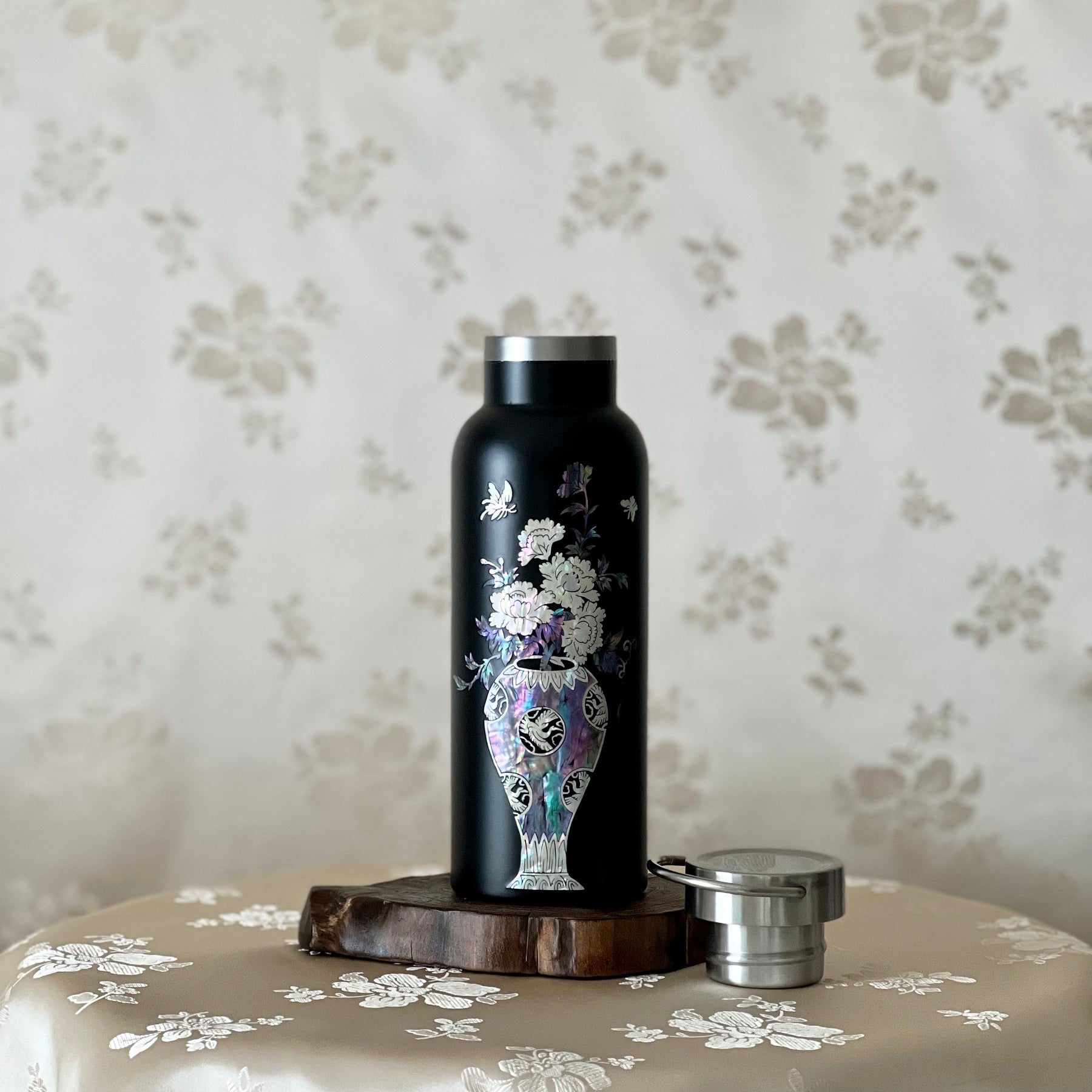 青磁花瓶模様螺鈿黒ステンレス保温瓶 (자개 청자호문 보온병)