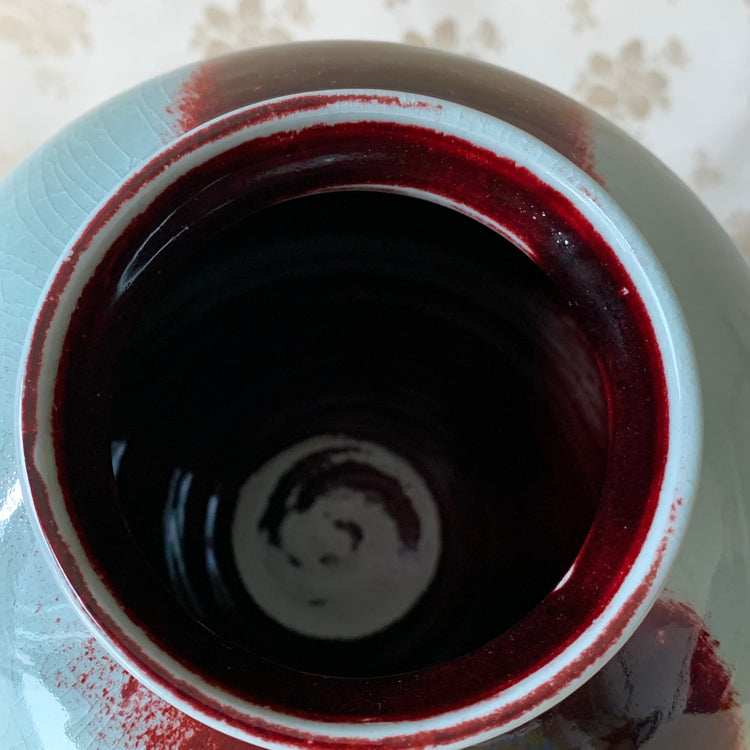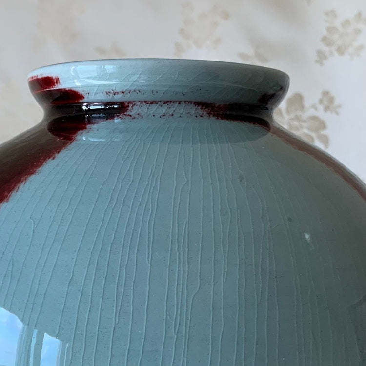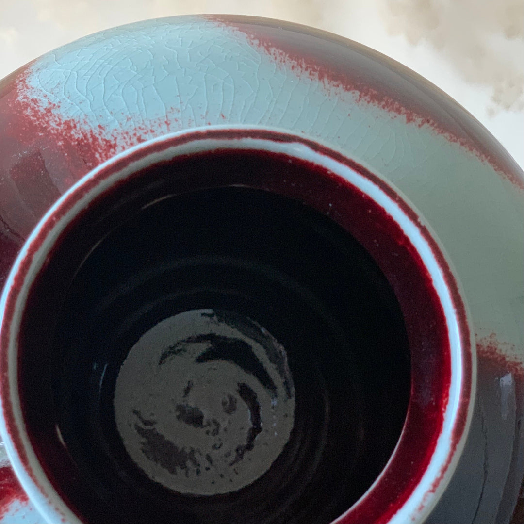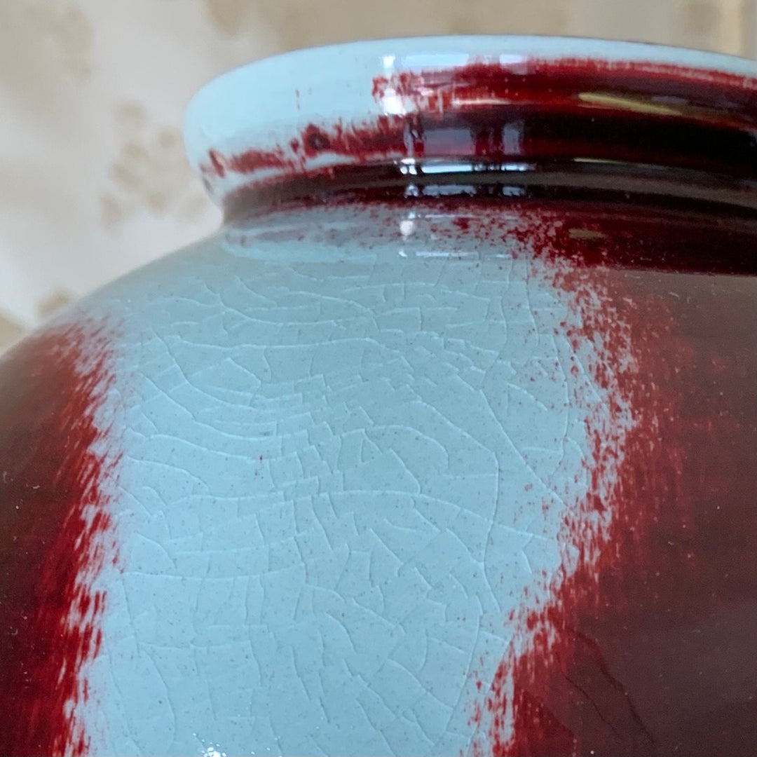ユニークな韓国の手作り銅釉磁器花瓶 (동화 요변 호) をご覧ください。他の陶器とは異なり、デザインは窯の熱によって作られるため、各作品は特別です。赤と緑の美しい組み合わせは、火が銅釉にどのように触れるかによって異なります。大切な人への特別な贈り物になります。