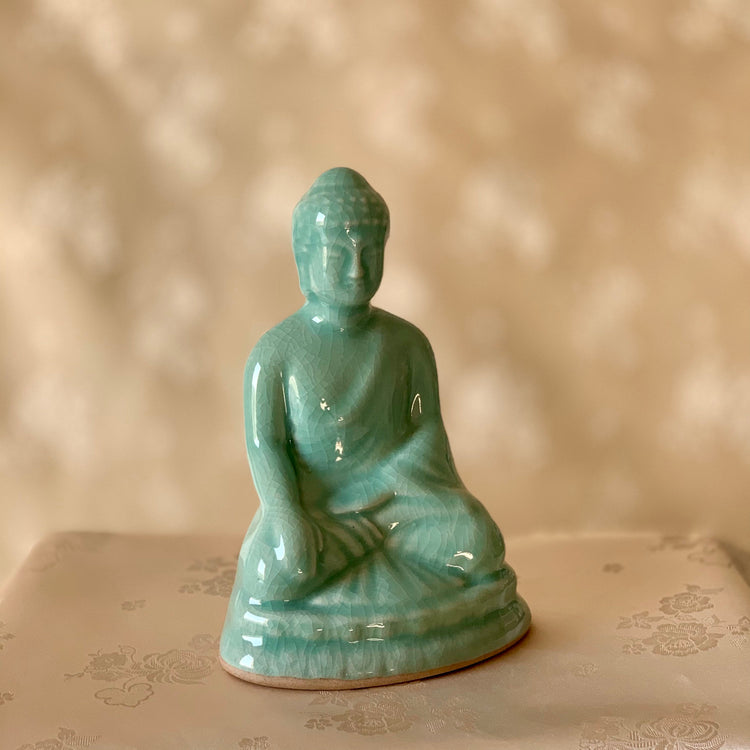 韓国の伝統的な手作り青磁の蓮華座の小さな仏像(청자 가부좌 상)で静寂を発見してください。小さなスペースに最適なサイズで、デスク、棚、瞑想コーナーに美しく飾れます。仏像の穏やかな表情は、どんな環境にも落ち着いた存在感をもたらし、瞑想の練習を強化したり、家の装飾に静けさを加えたりするのに理想的です。細部にまでこだわって巧みに作られたこの小さいながらも絶妙な像は、韓国の芸術の時代を超えた美しさをとらえています。このエレガントで意味深い作品で空間を高めましょう。