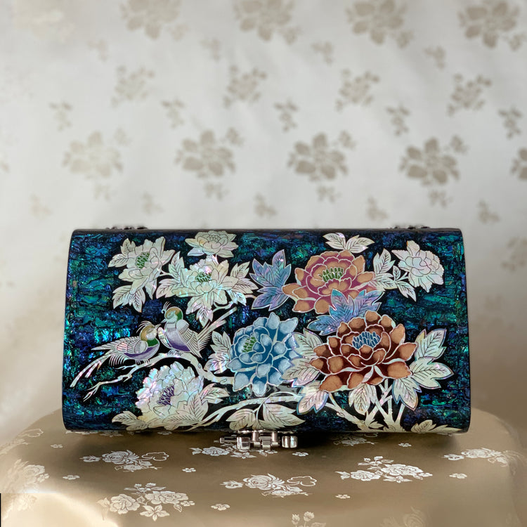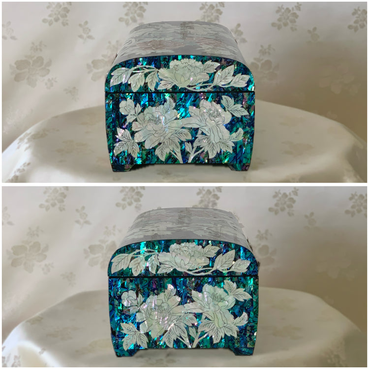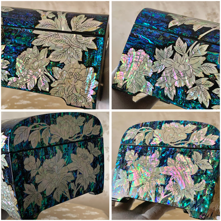 牡丹と鳥の模様のマザーオブパールジュエリーボックス