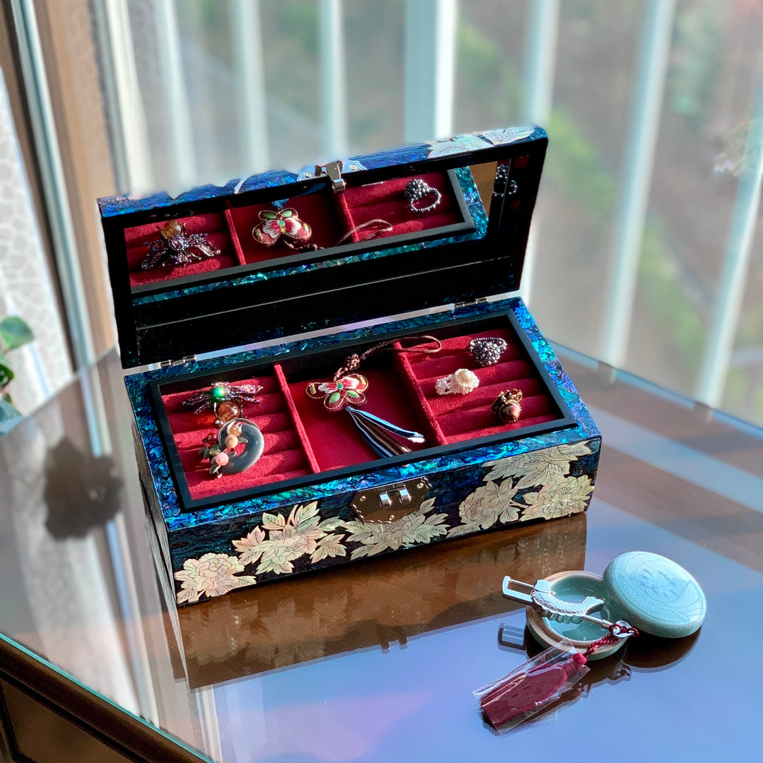 このジュエリー ボックスは実用的な収納ソリューションであるだけでなく、どんな部屋も引き立てる魅力的な装飾品でもあります。思いやりのある洗練されたギフトとして最適で、時代を超えた韓国の職人技の芸術性を讃えます。