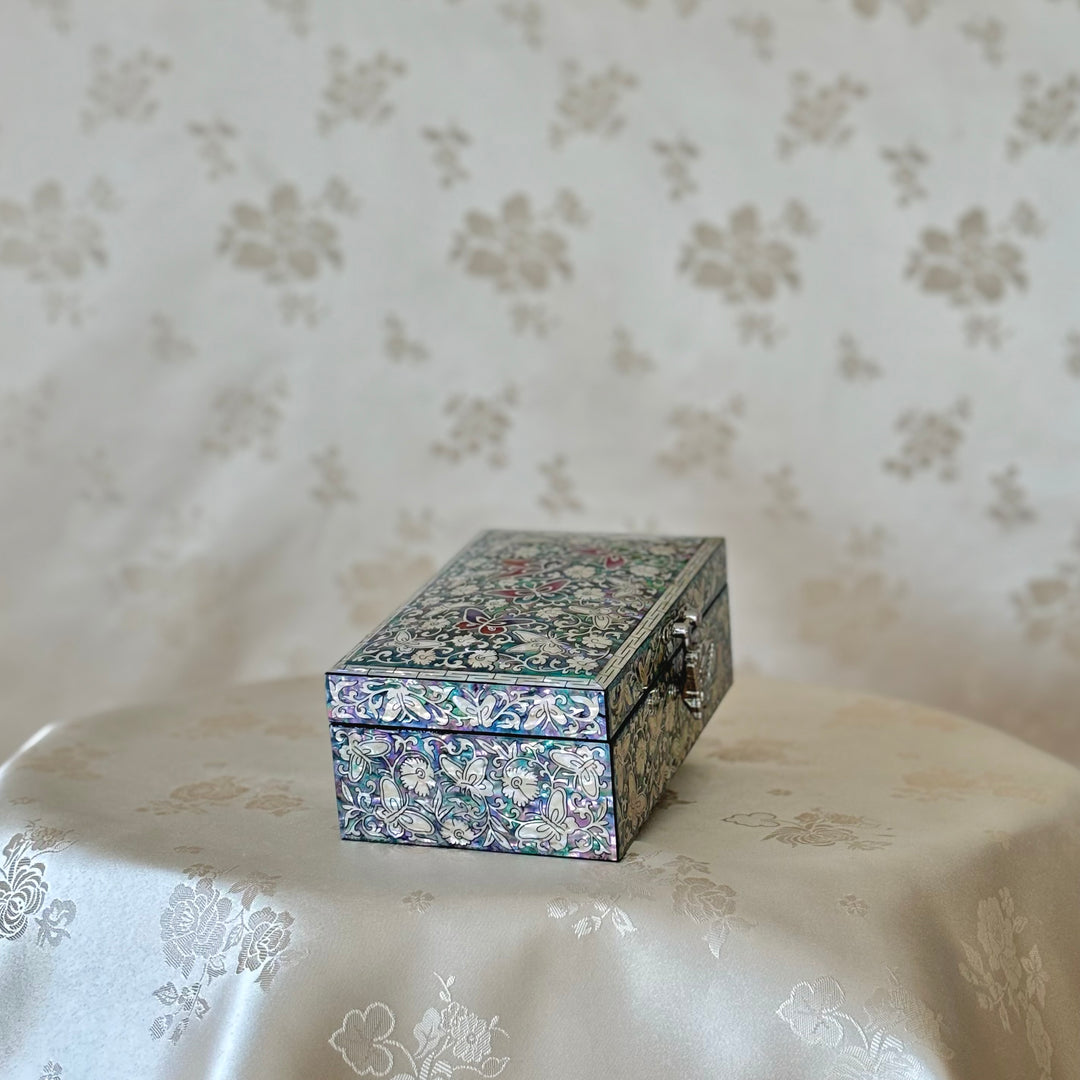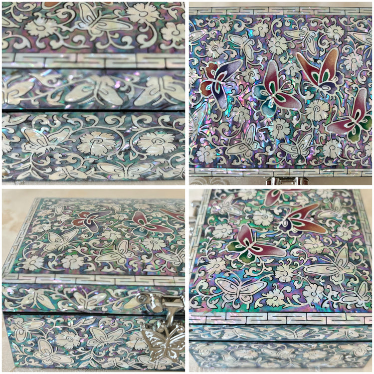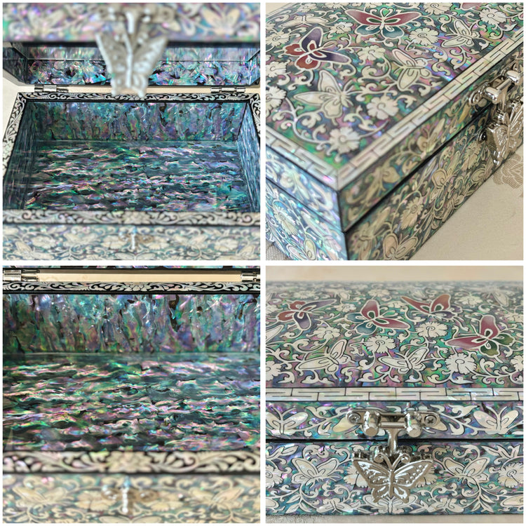 蝶とつる模様のマザーオブパール木製ジュエリーボックス