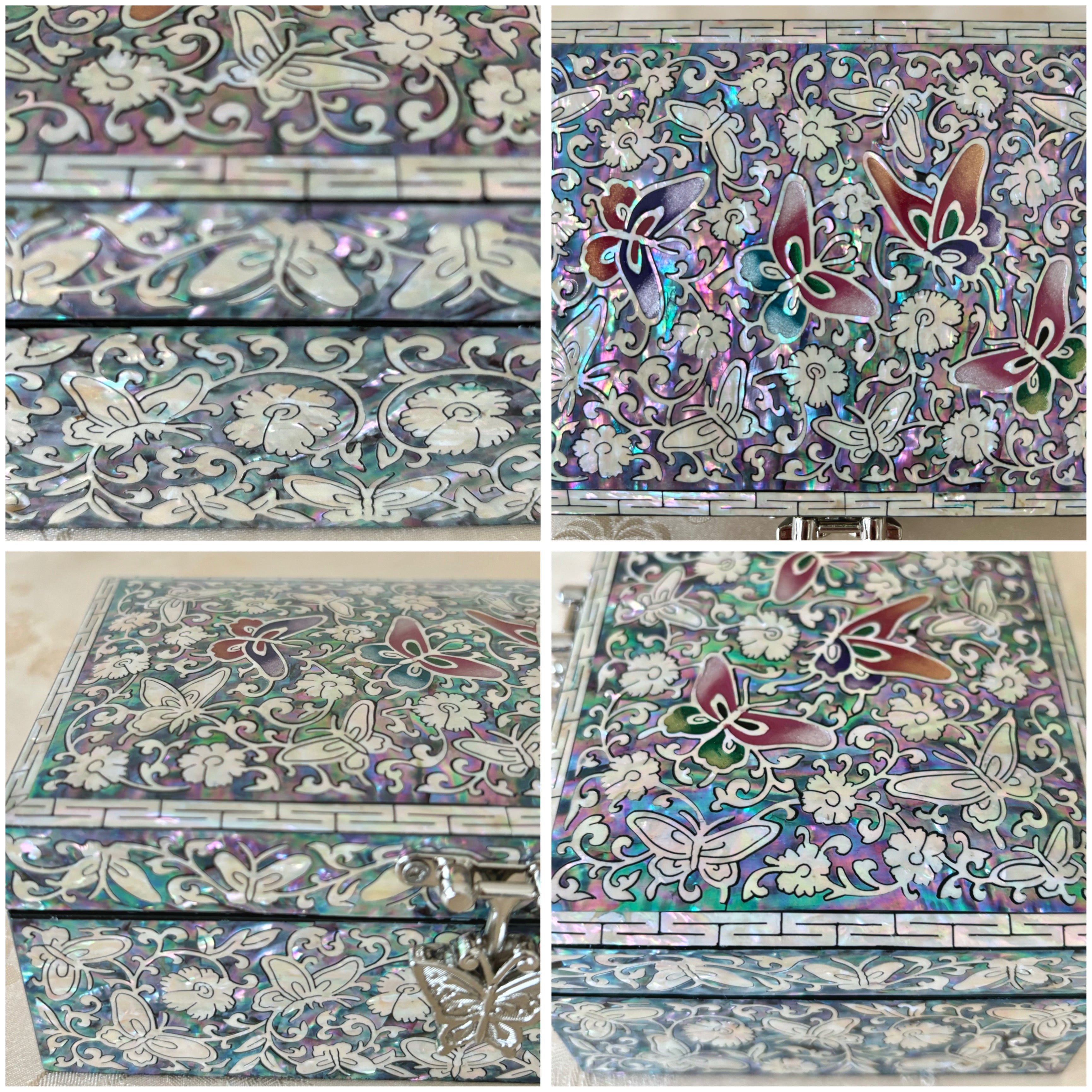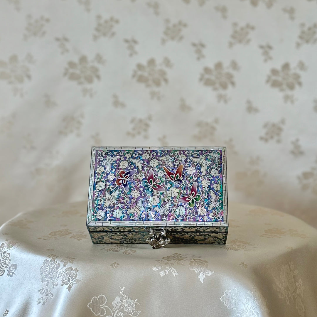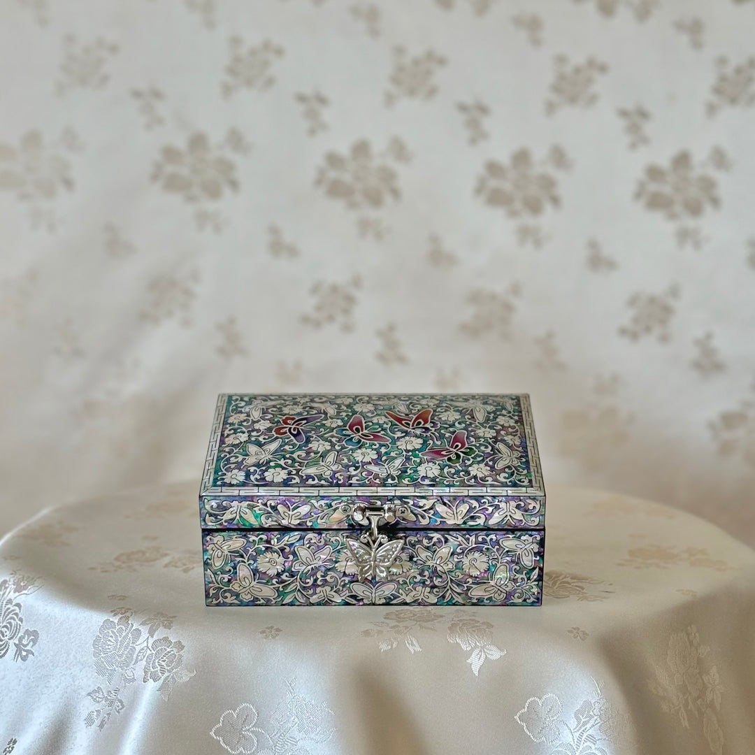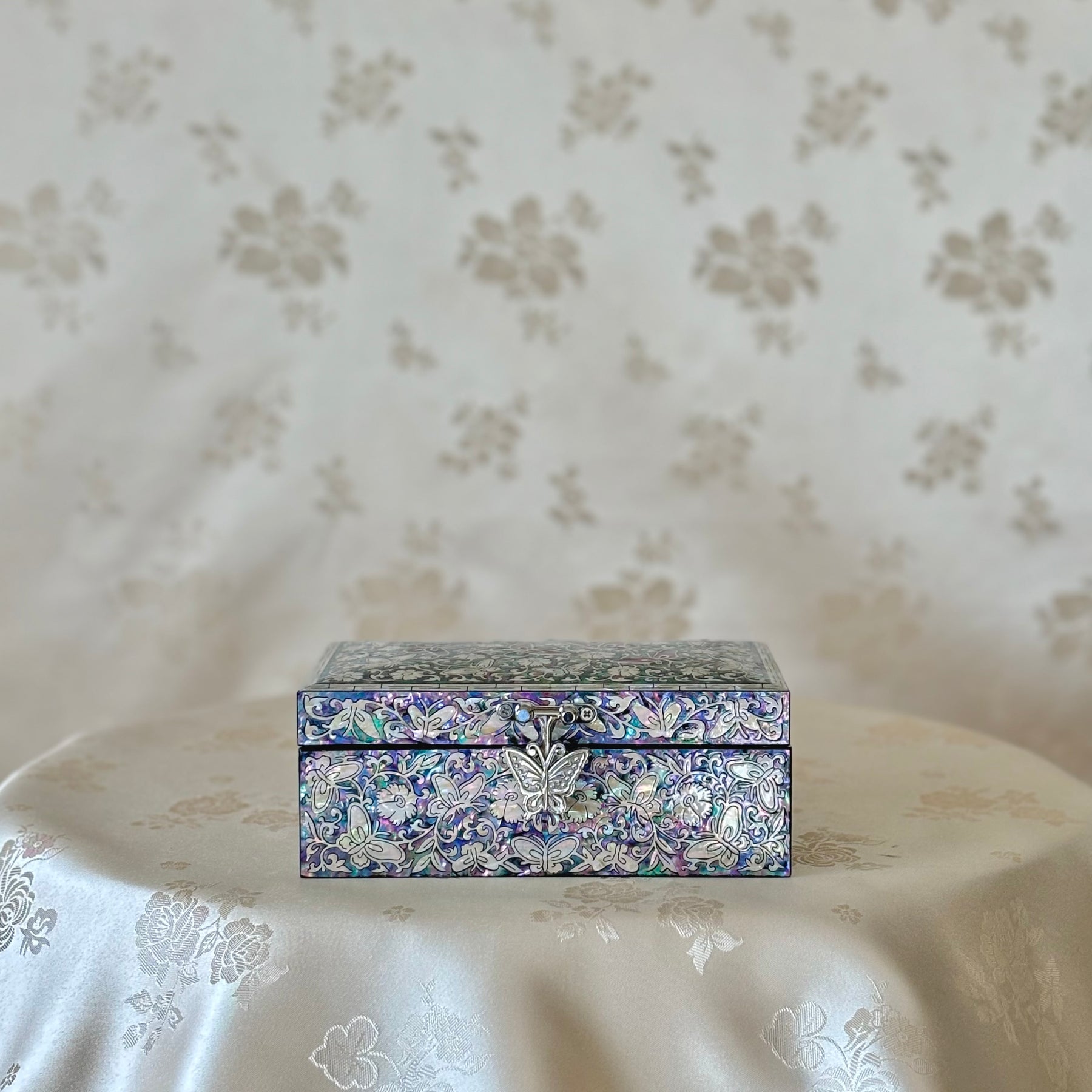 韓国の伝統を取り入れる:蝶と蔓の模様が描かれた手作りの木製ジュエリーボックス。 (ホテルの客室乗務員が客室乗務員を募集しています)