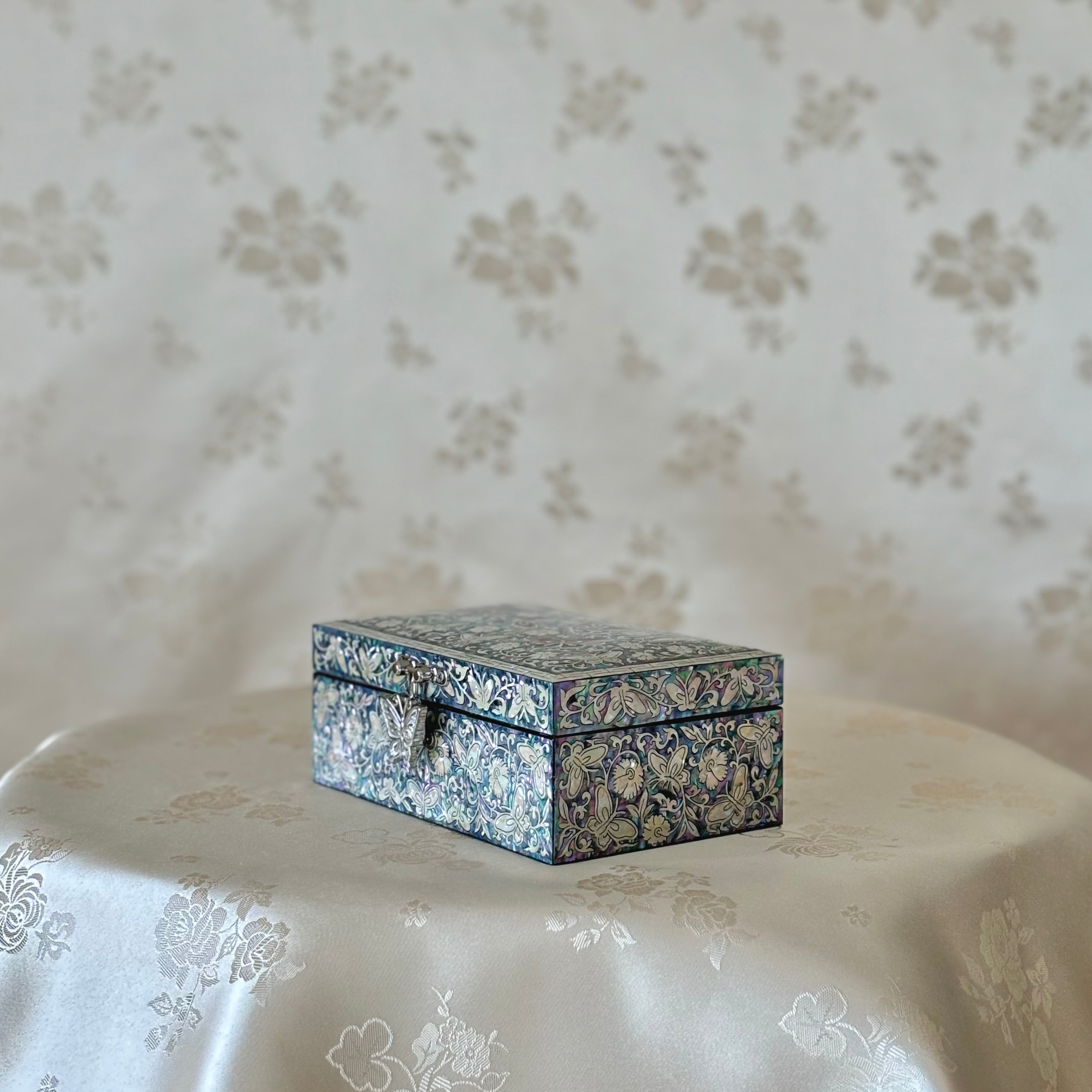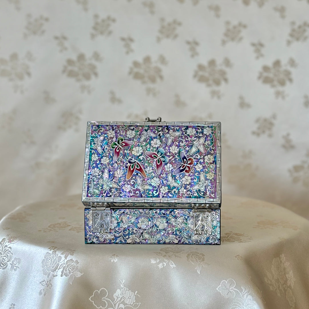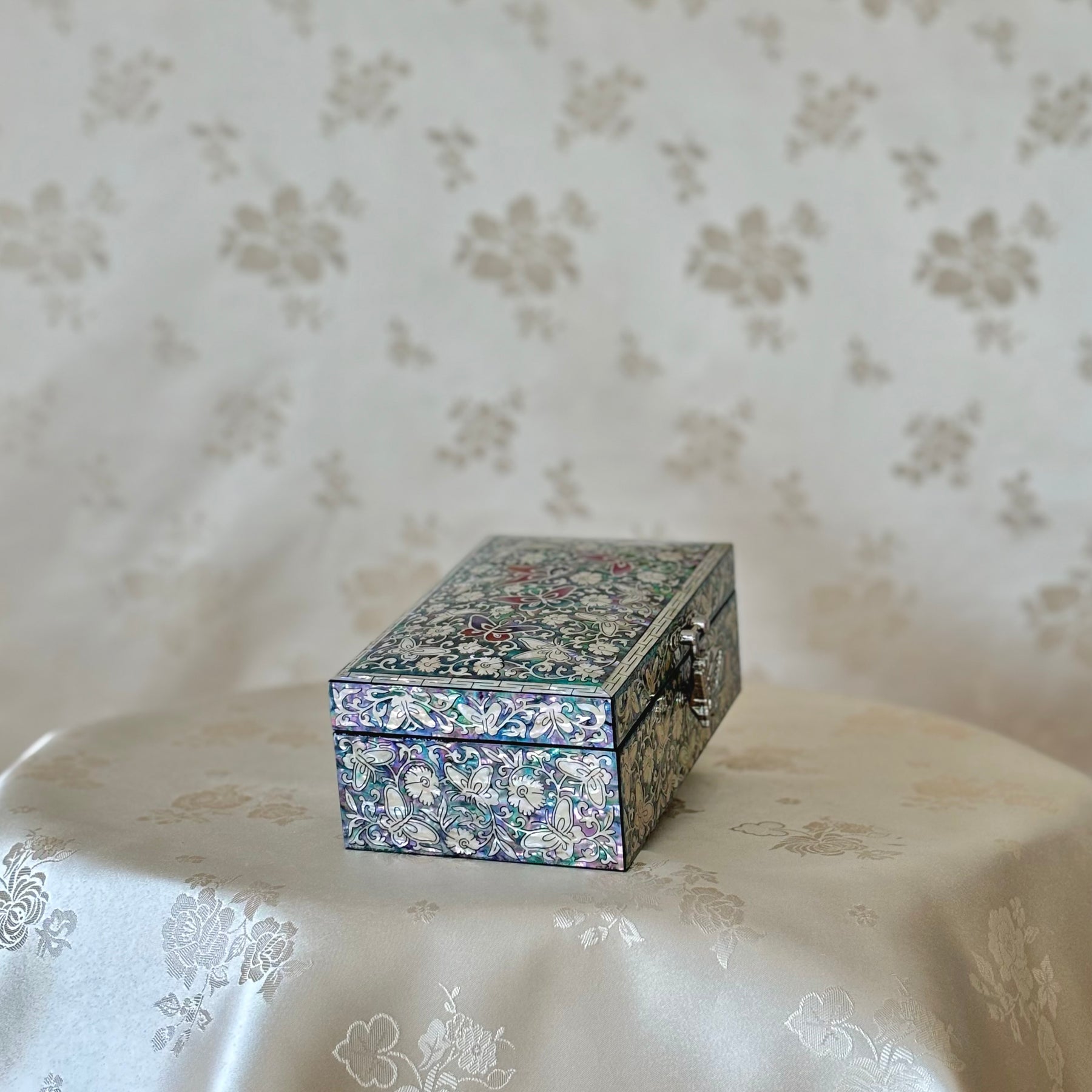 韓国の伝統を取り入れる:蝶と蔓の模様が描かれた手作りの木製ジュエリーボックス。 (ホテルの客室乗務員が客室乗務員を募集しています)