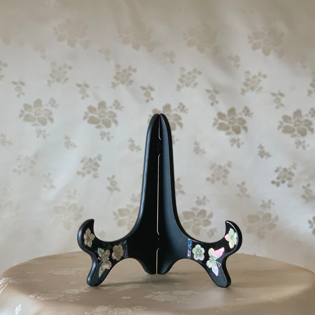 黒いスタンドが付属しており、装飾品として飾ったり、サービングトレイとして使用したりできます。韓国の芸術や文化を愛する人への贈り物として、またはご自宅にユニークでエレガントなアクセントとしてご自分用にも最適です。