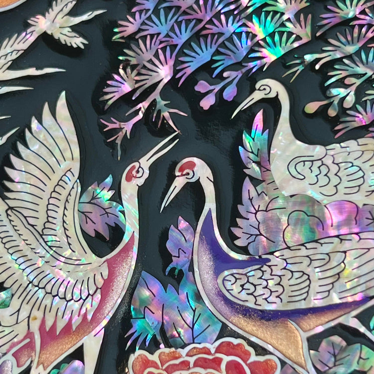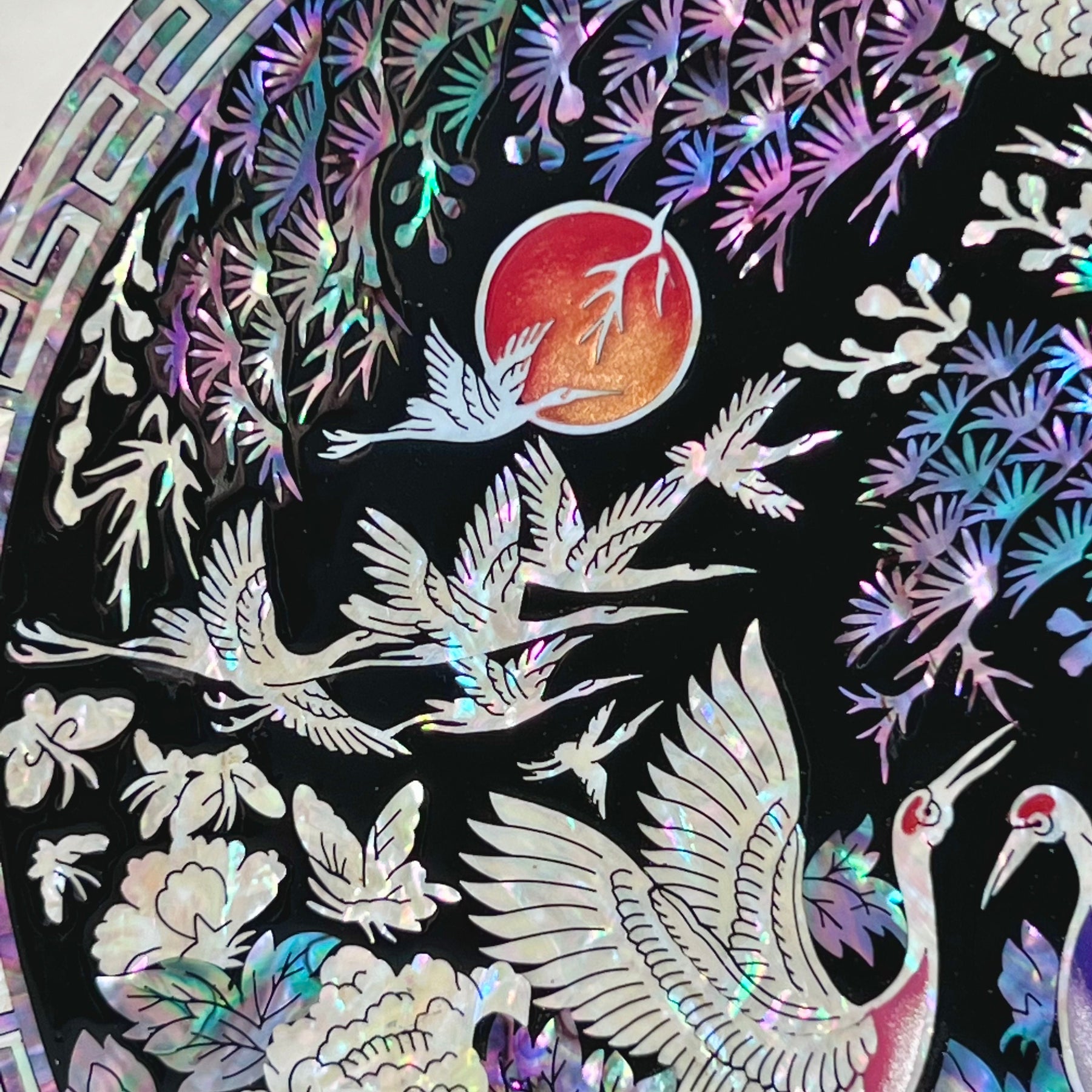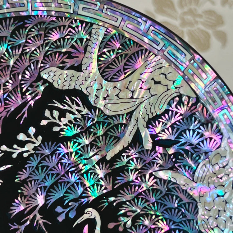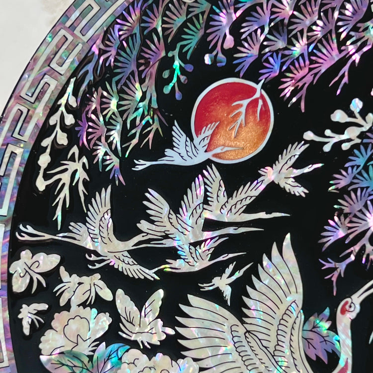 Mother of Pearl Wooden Plate with Pine and Crane Pattern (자개 송학문 접시)