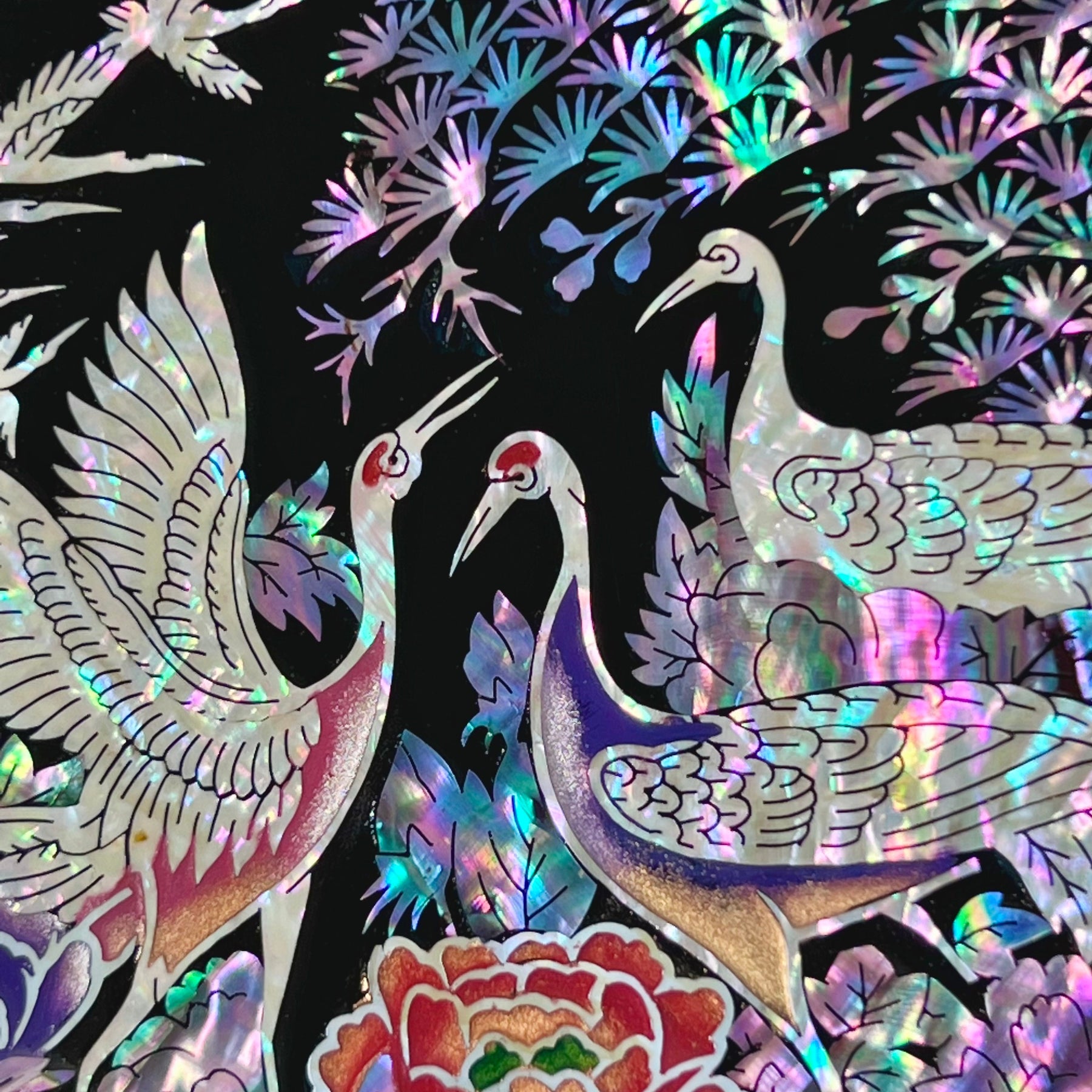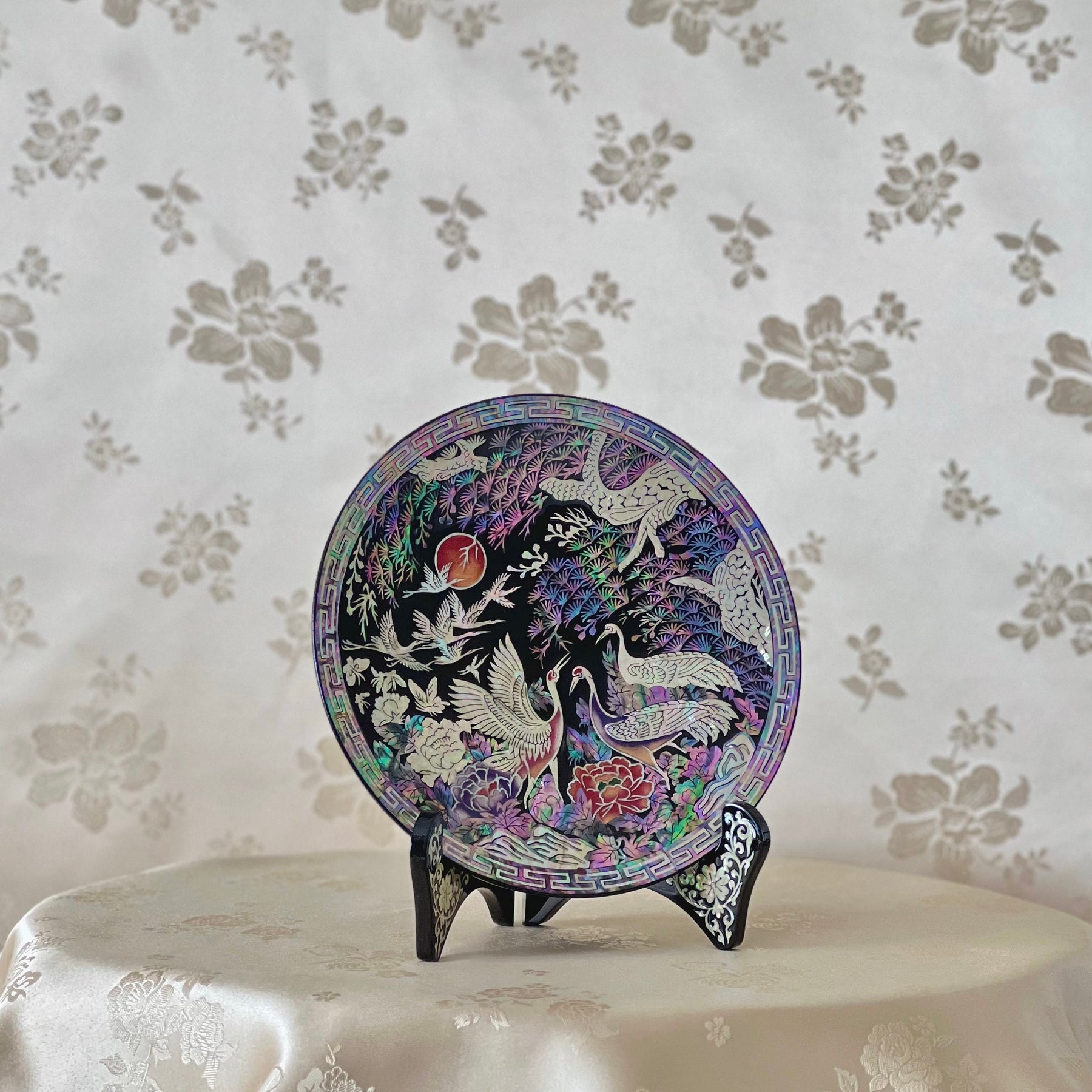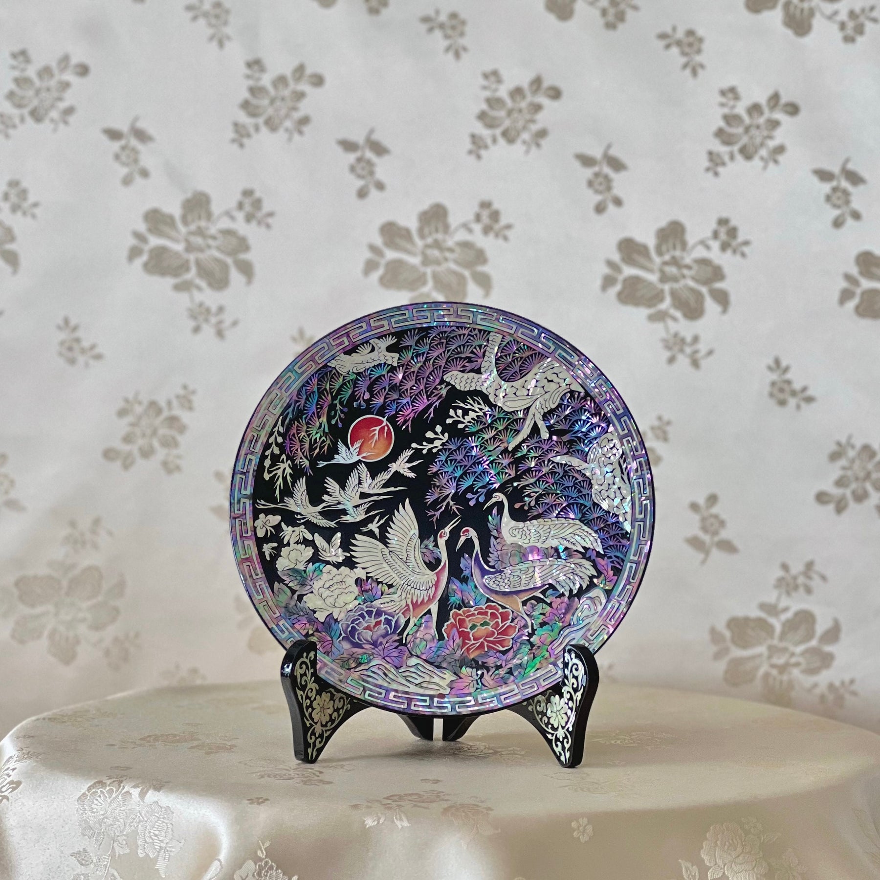 Mother of Pearl Wooden Plate with Pine and Crane Pattern (자개 송학문 접시)