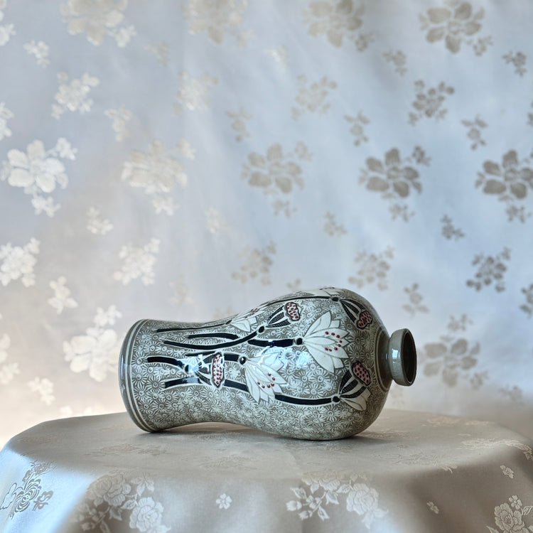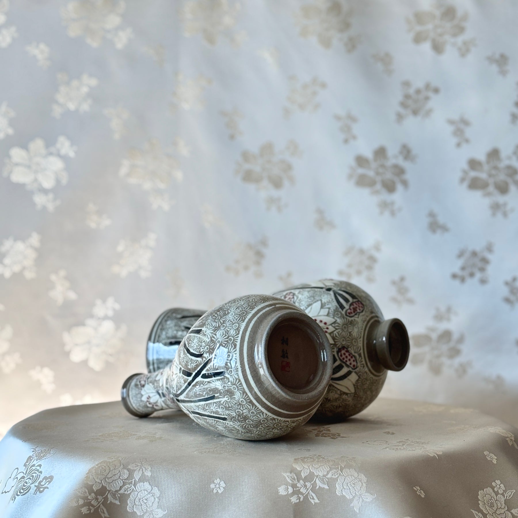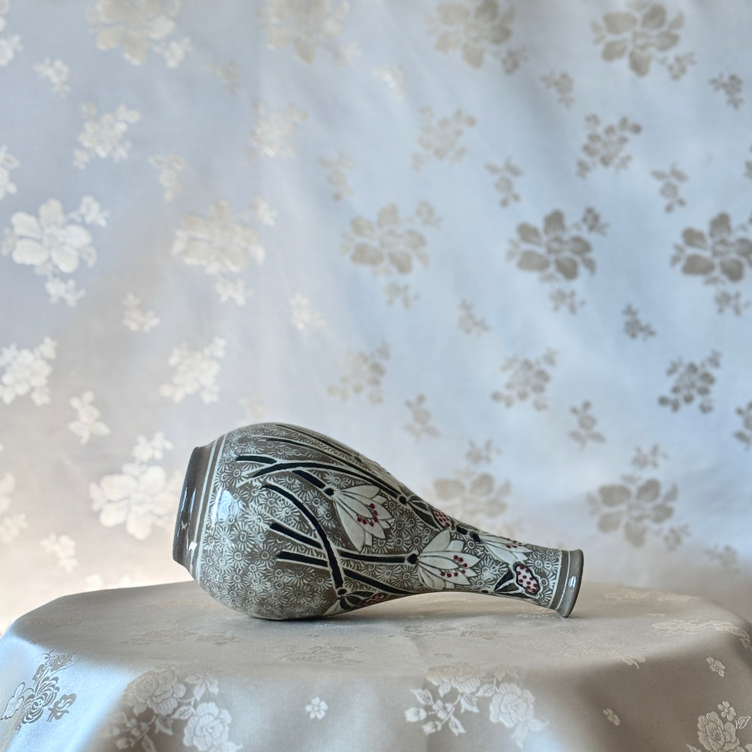 Buncheong Ware Vase Set: Lotus Flower Inlay and Chrysanthemum Stamped Designs