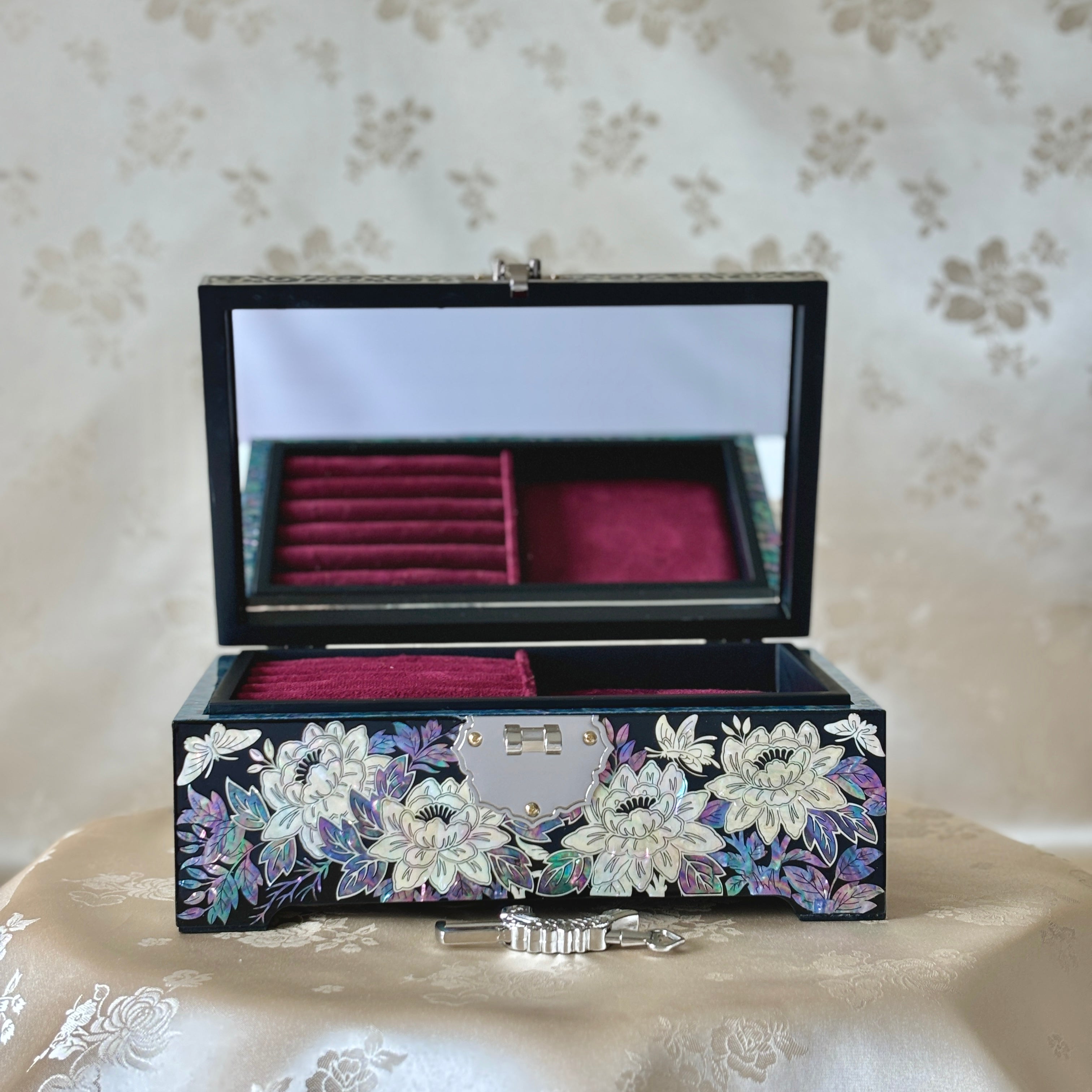 The butterfly and peony patterns are traditional symbols of beauty and prosperity in Korean culture, making this jewelry box a meaningful gift for weddings and special occasions. Its timeless elegance ensures it remains a cherished piece for years to come.