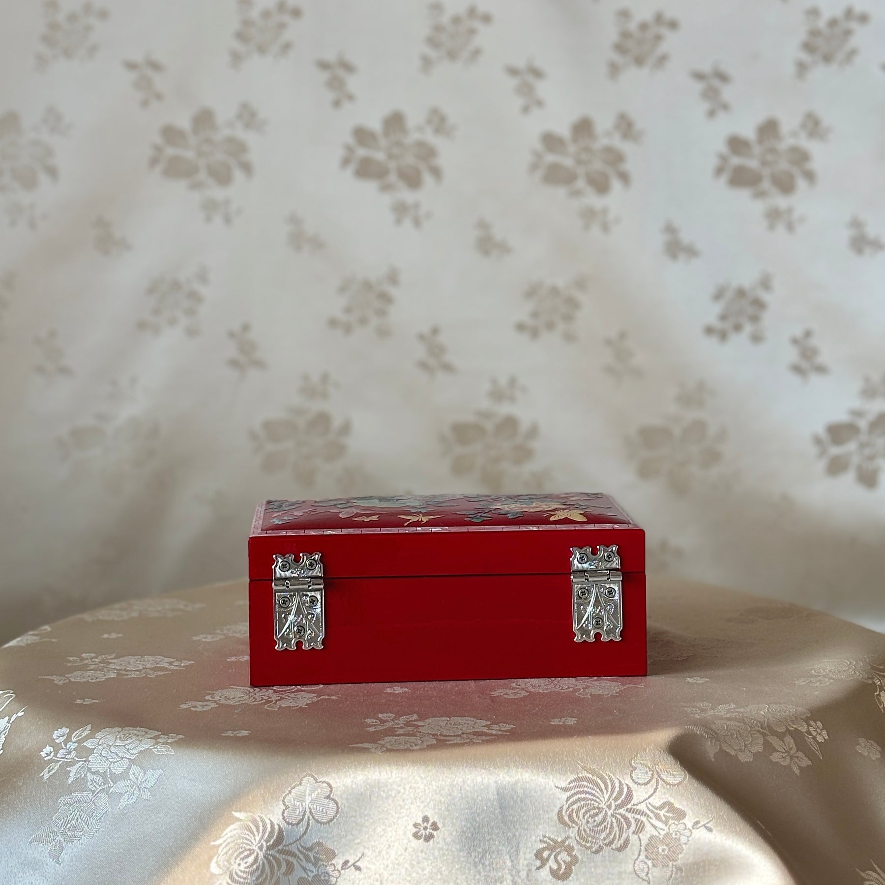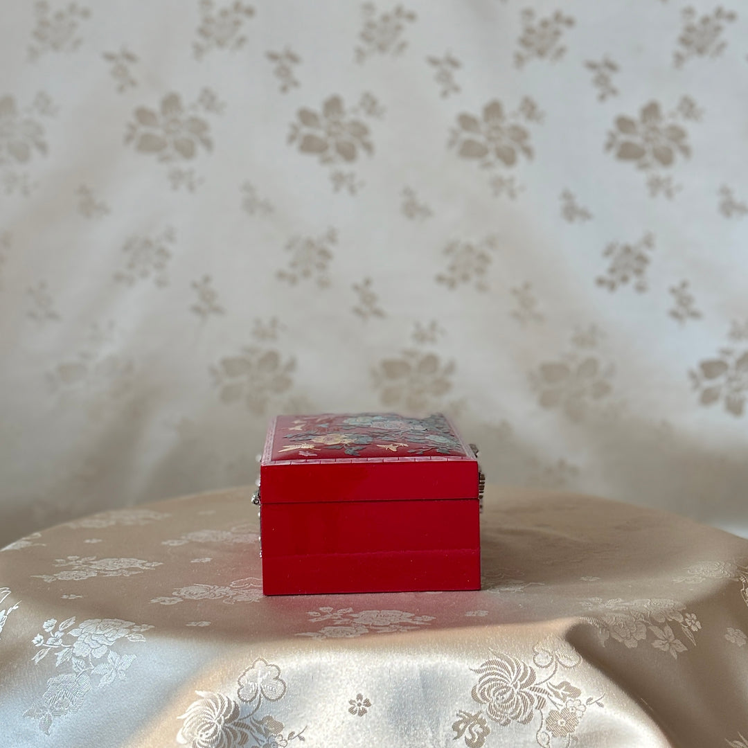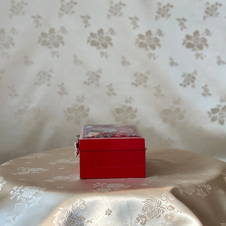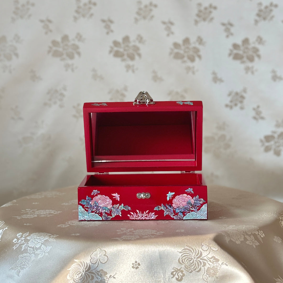 Mother of Pearl Red Jewelry Box with Peony and Butterfly Motif