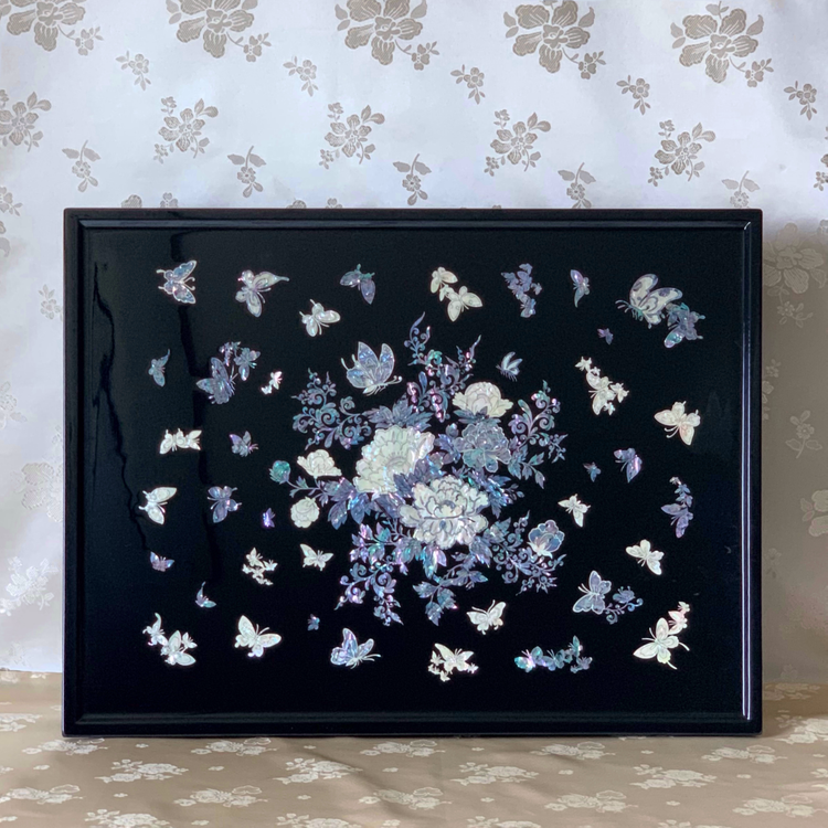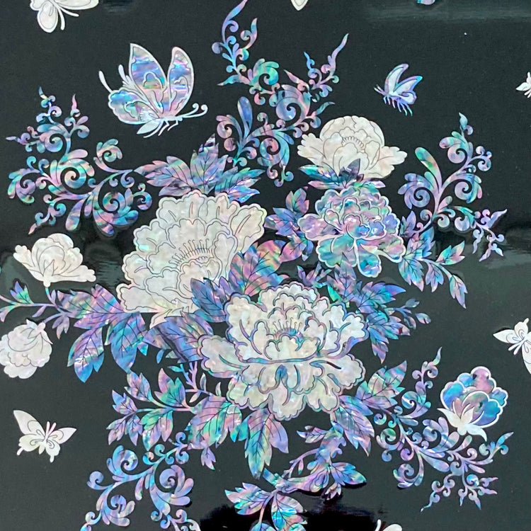 Mother of Pearl Table with Beutiful Foldable Legs and Pattern of Butterflies and Peony (모란 호접문 자개상)