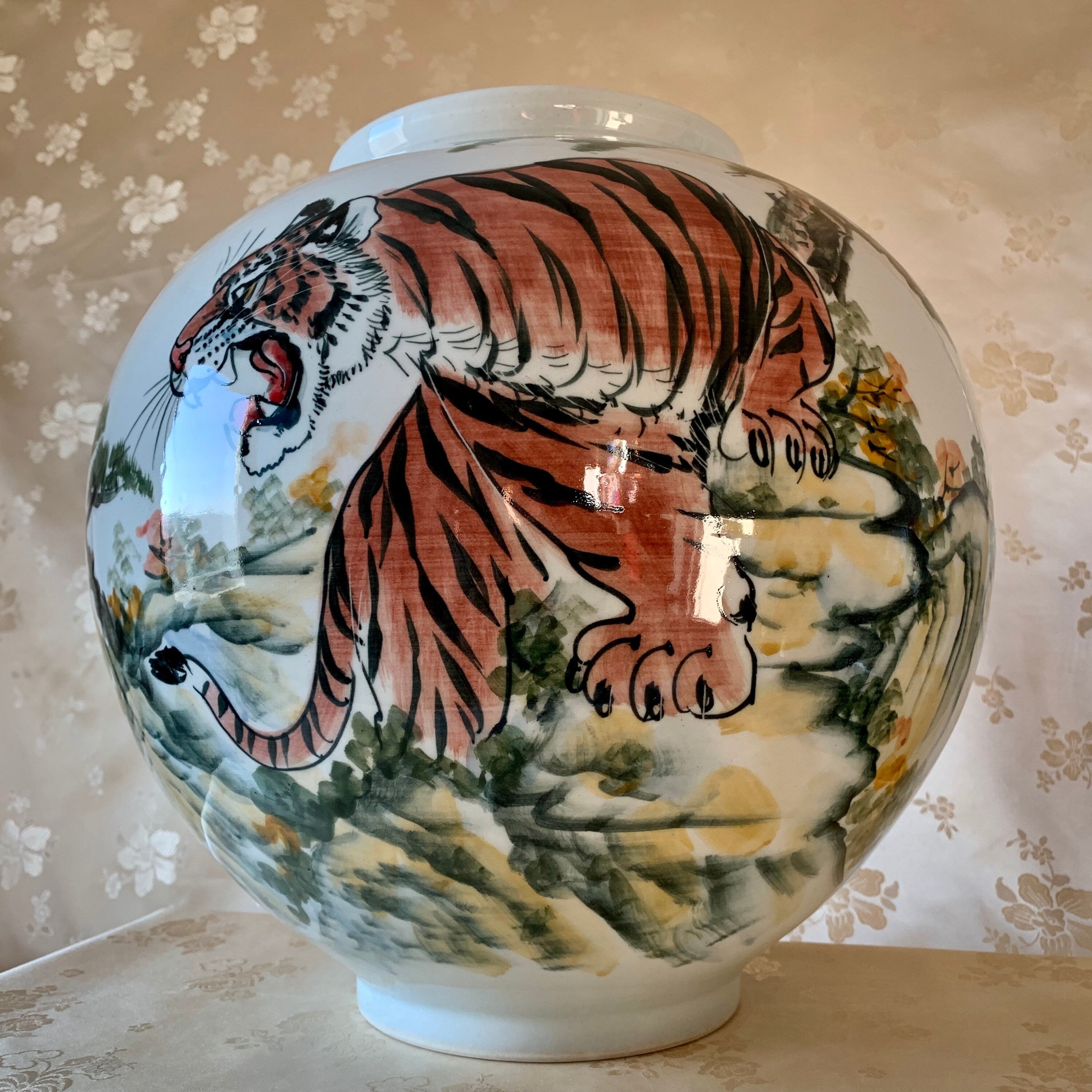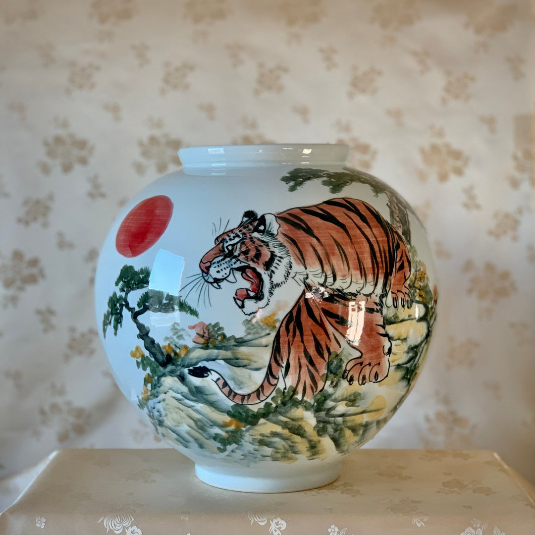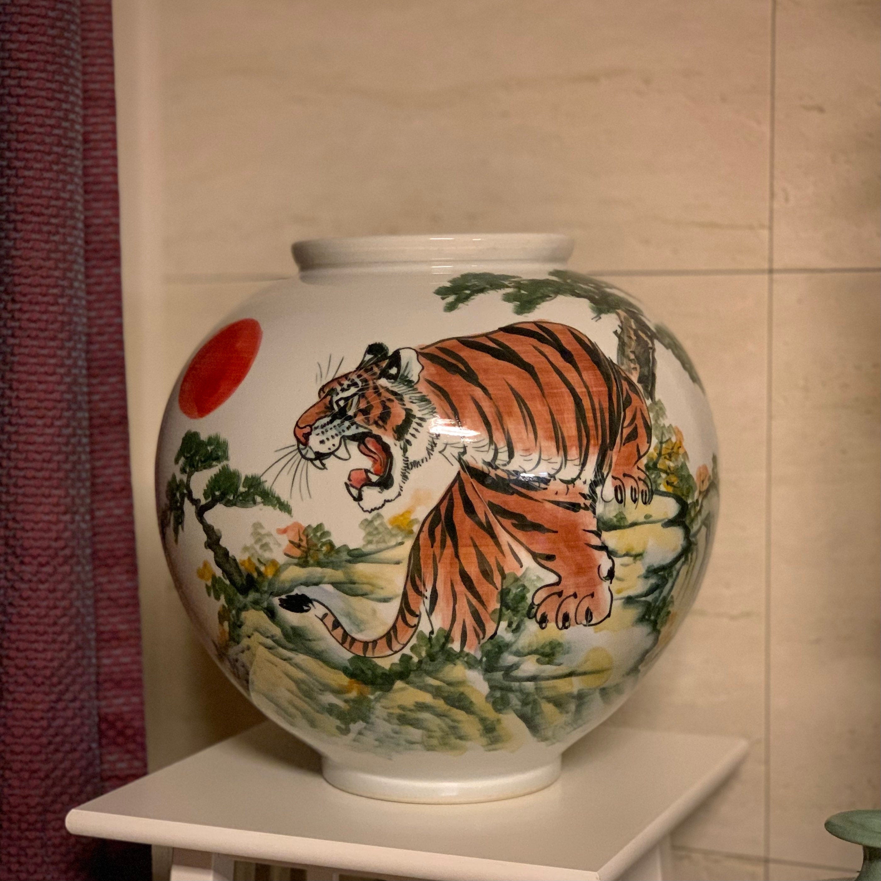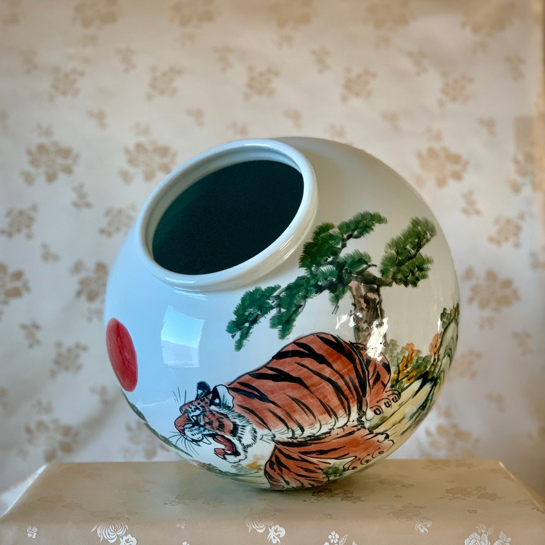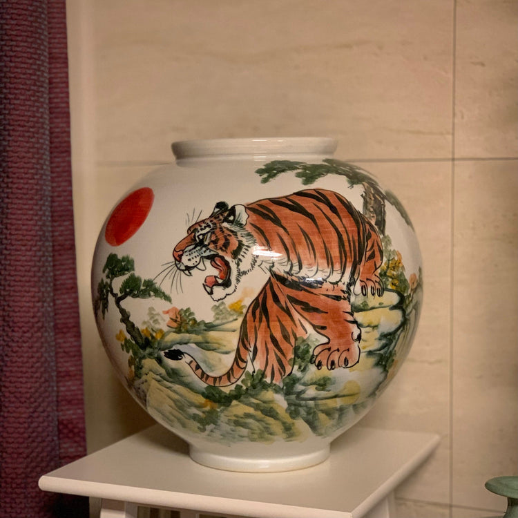 White Porcelain Vase with Tiger and Pine Tree Pattern (백자 호송문 호)