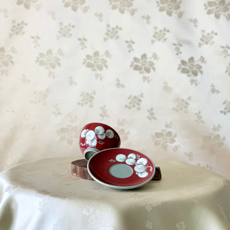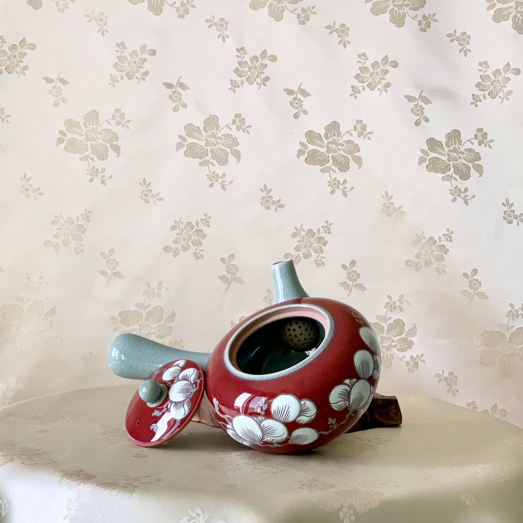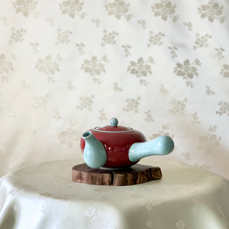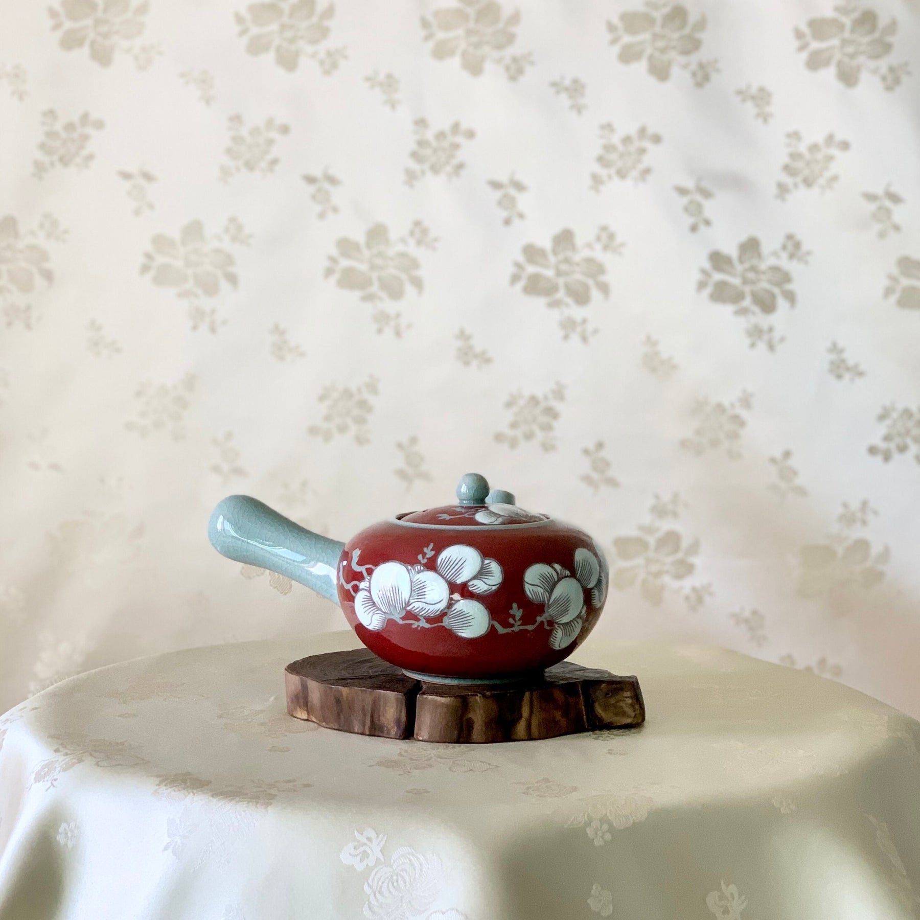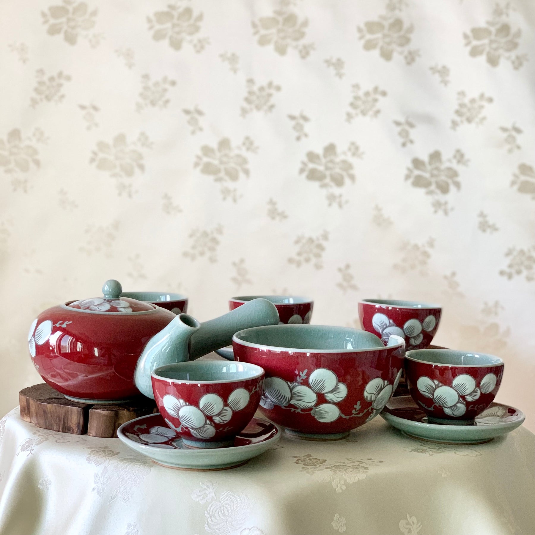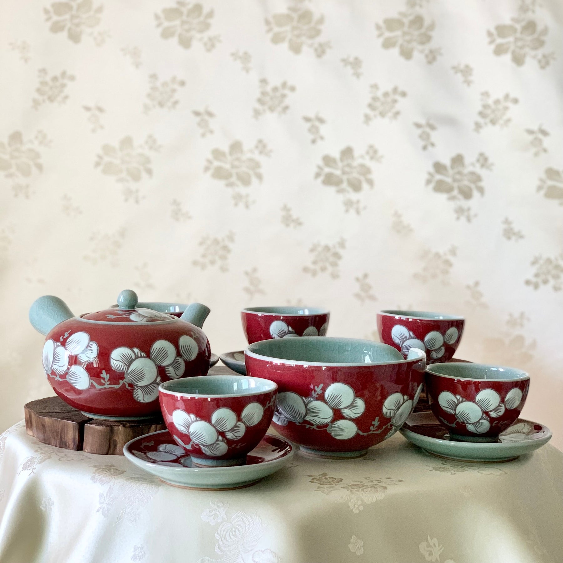Red Celadon Tea Set for 5 People with Magnolia Pattern (청자 동화 목련문 5인 다기 세트)